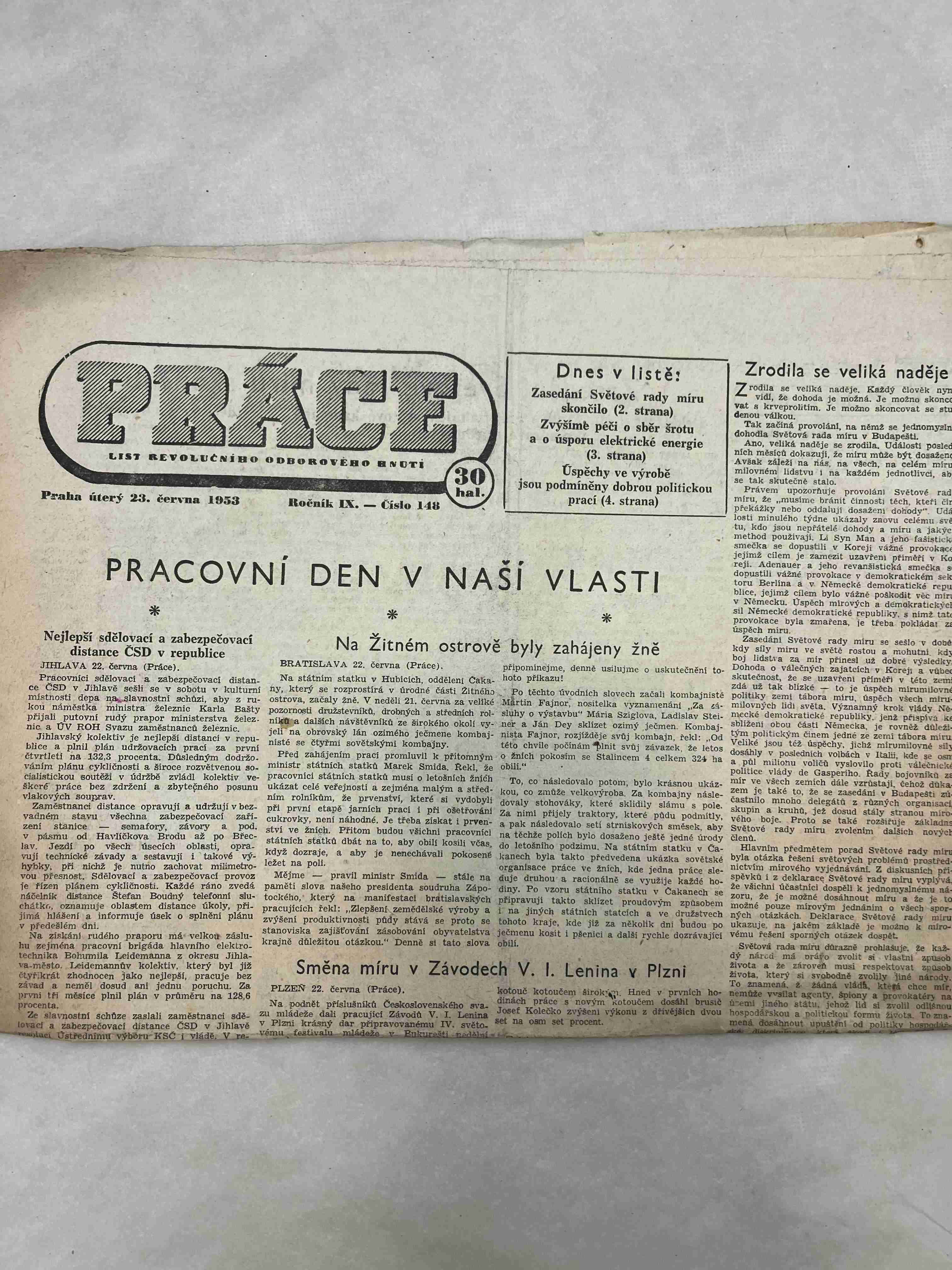 Originální dobový výtisk novin, nejedná se o reprodukci!