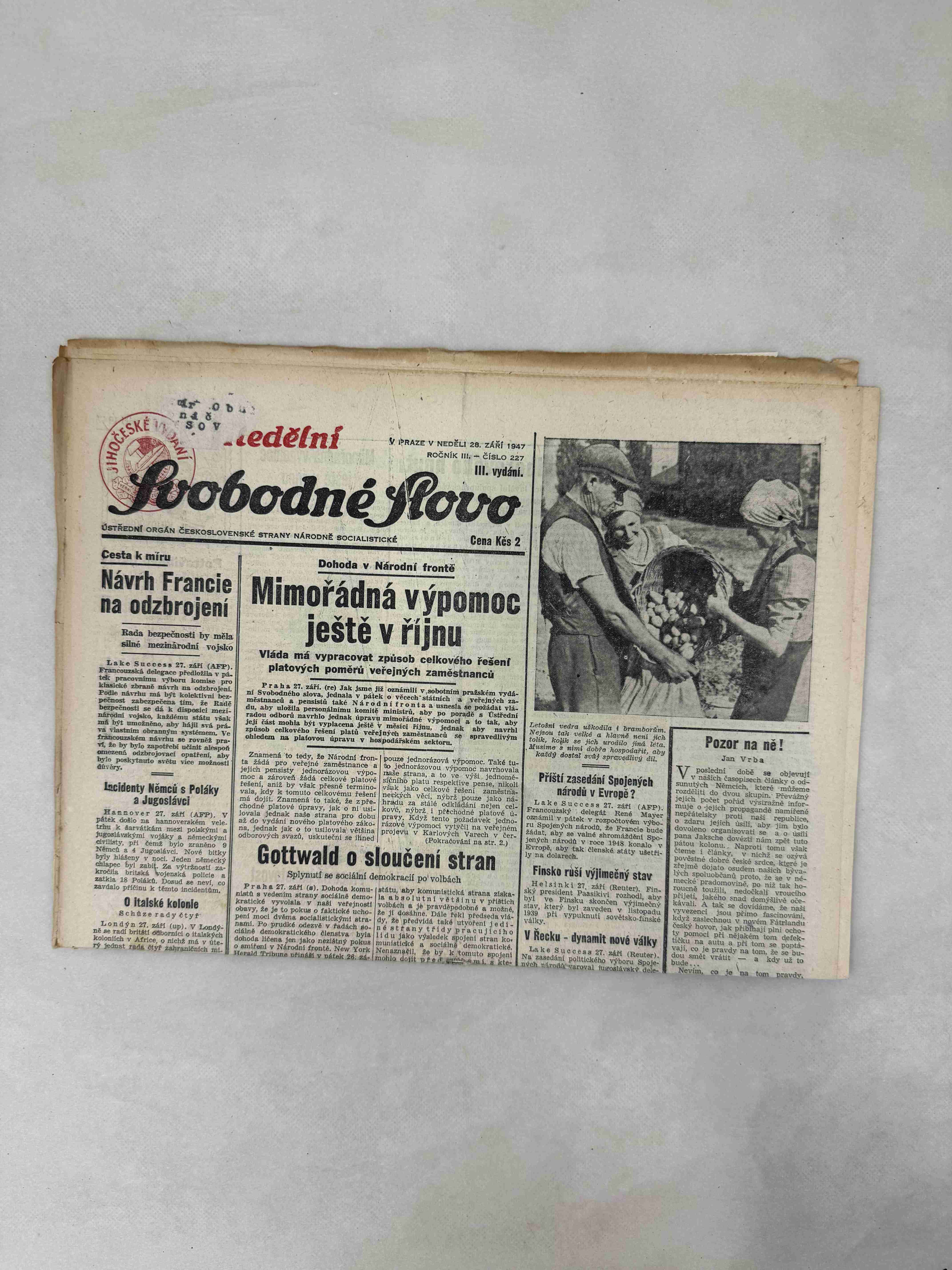 Nabízené noviny jsou určeny výhradně ke sběratelským účelům a neslouží k propagaci jakéhokoliv hnutí směřujícího k potlačení práv a svobod člověka (nacistického, komunistického apod.). Prodávající se distancuje od výše uvedených hnutí a jejich myšlenek.