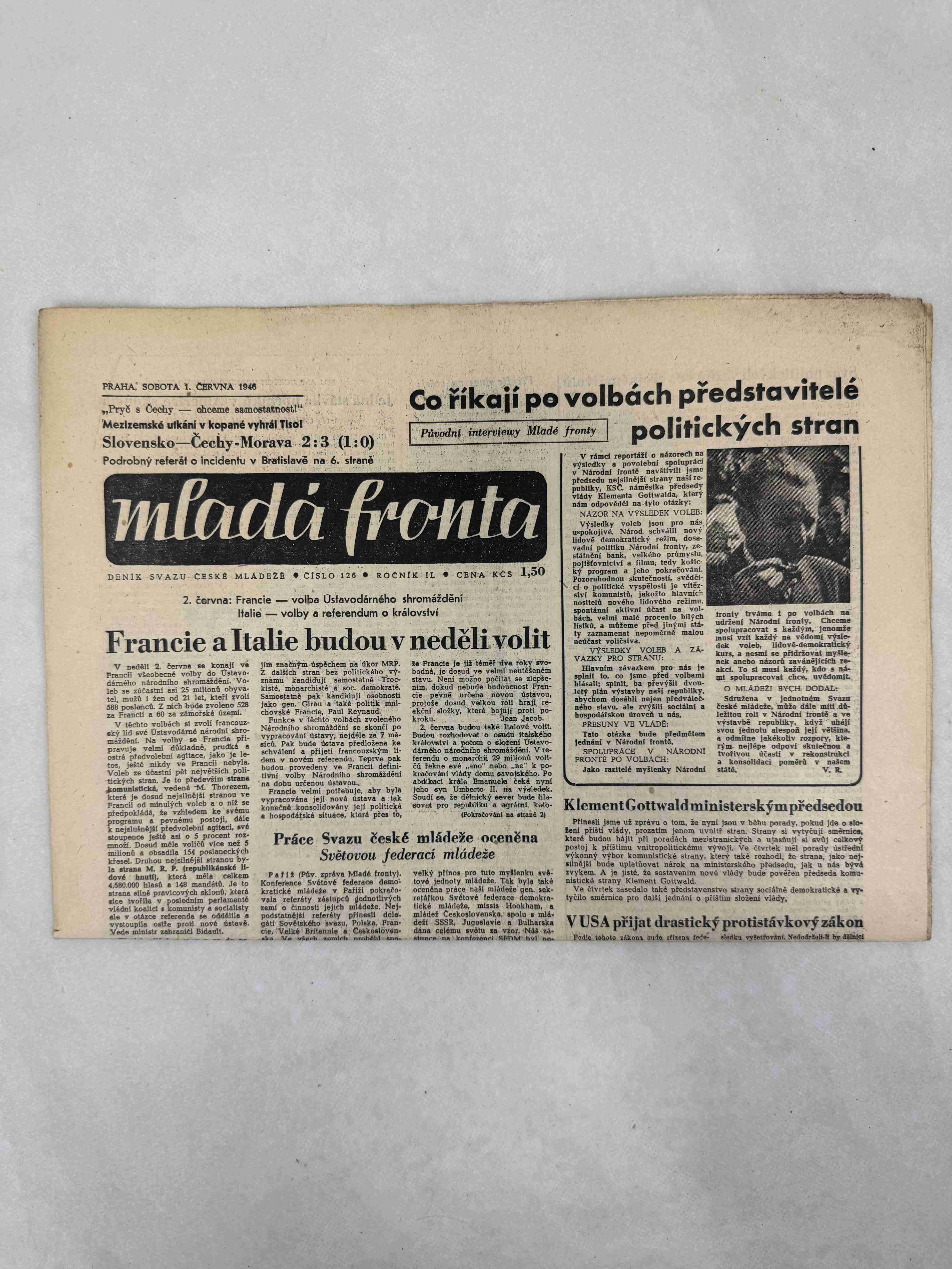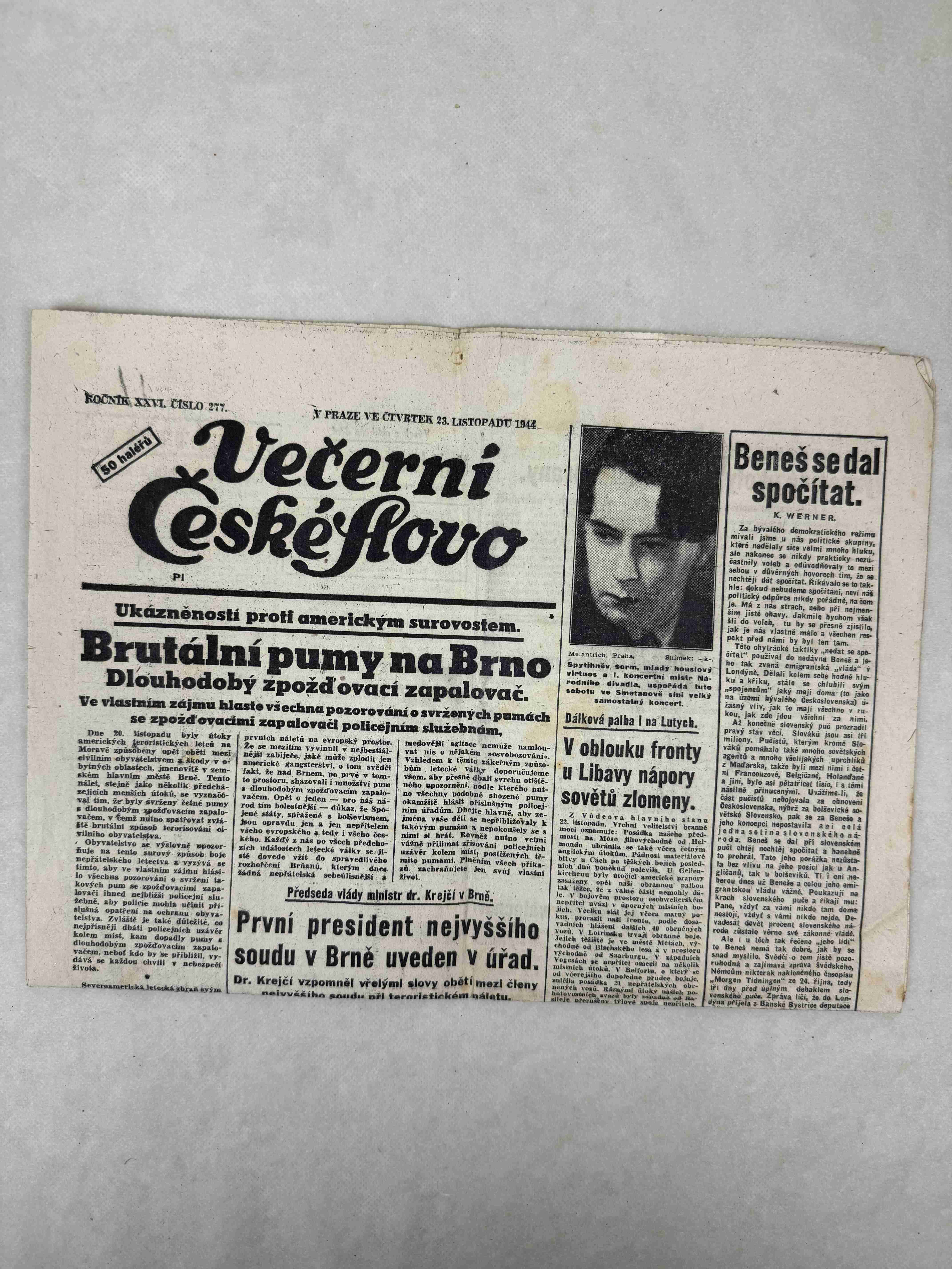 Originální dobový výtisk novin, nejedná se o reprodukci!