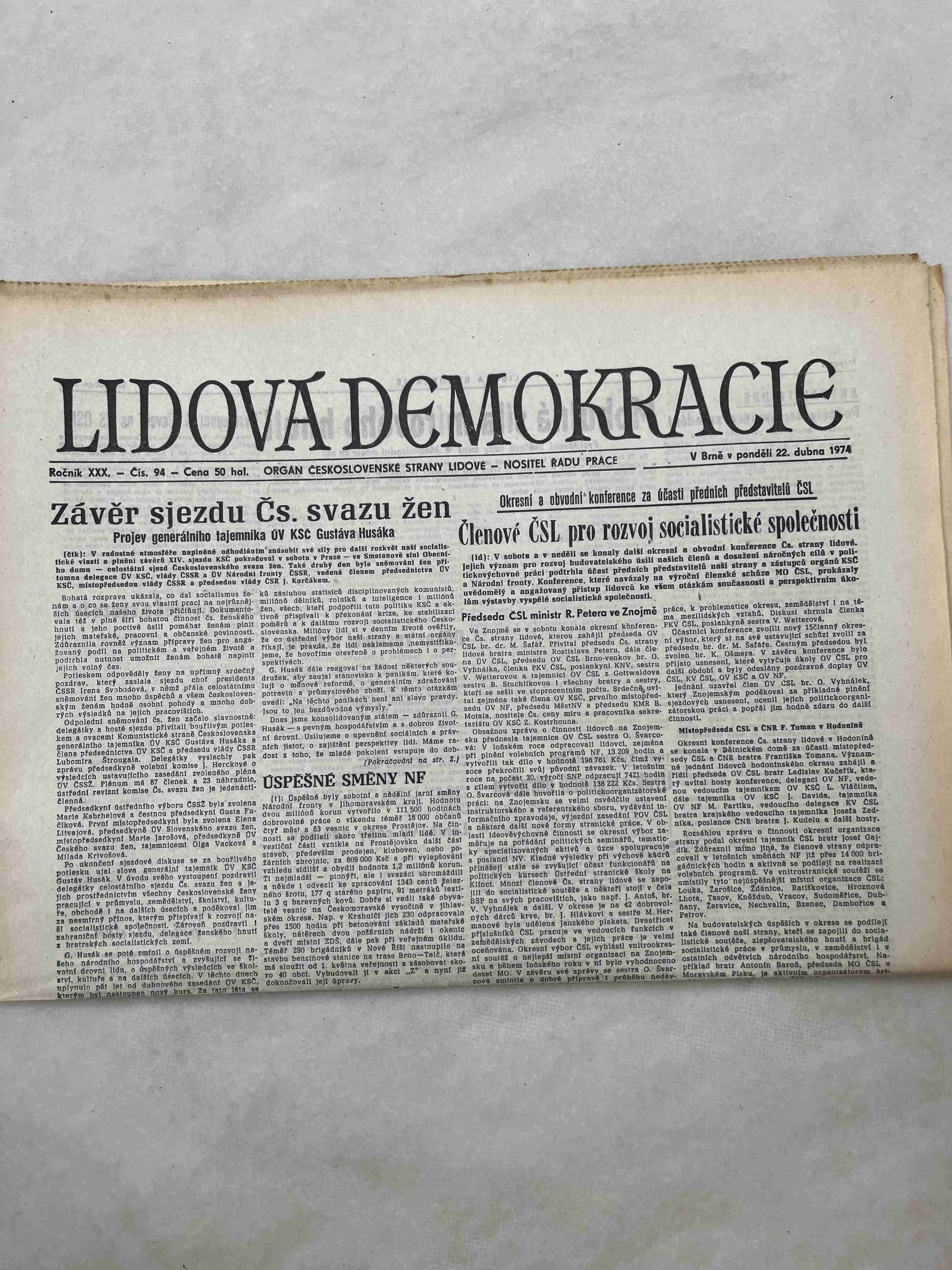 Noviny Lidová demokracie 16.10.1974