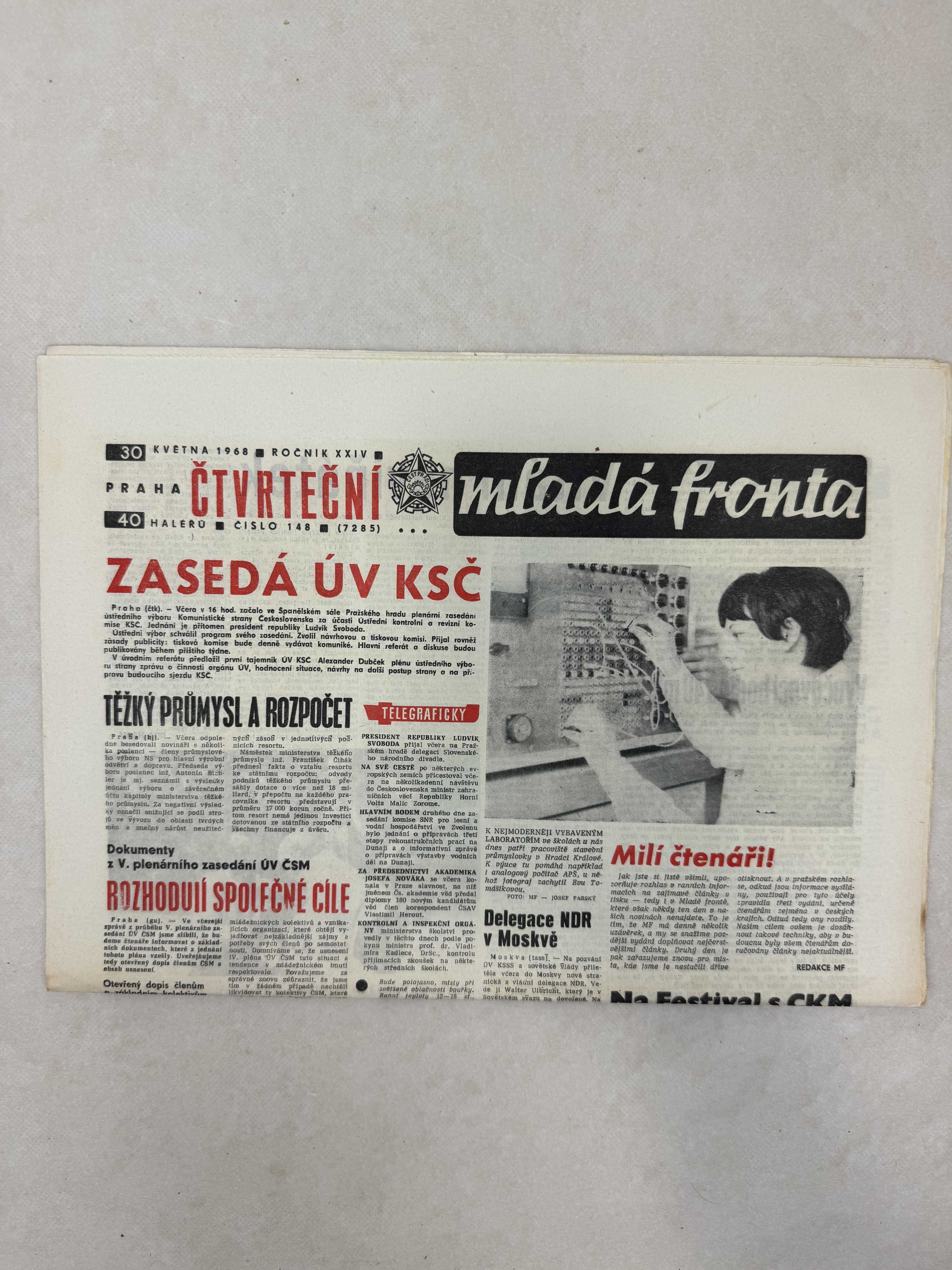 Originální dobový výtisk novin, nejedná se o reprodukci!