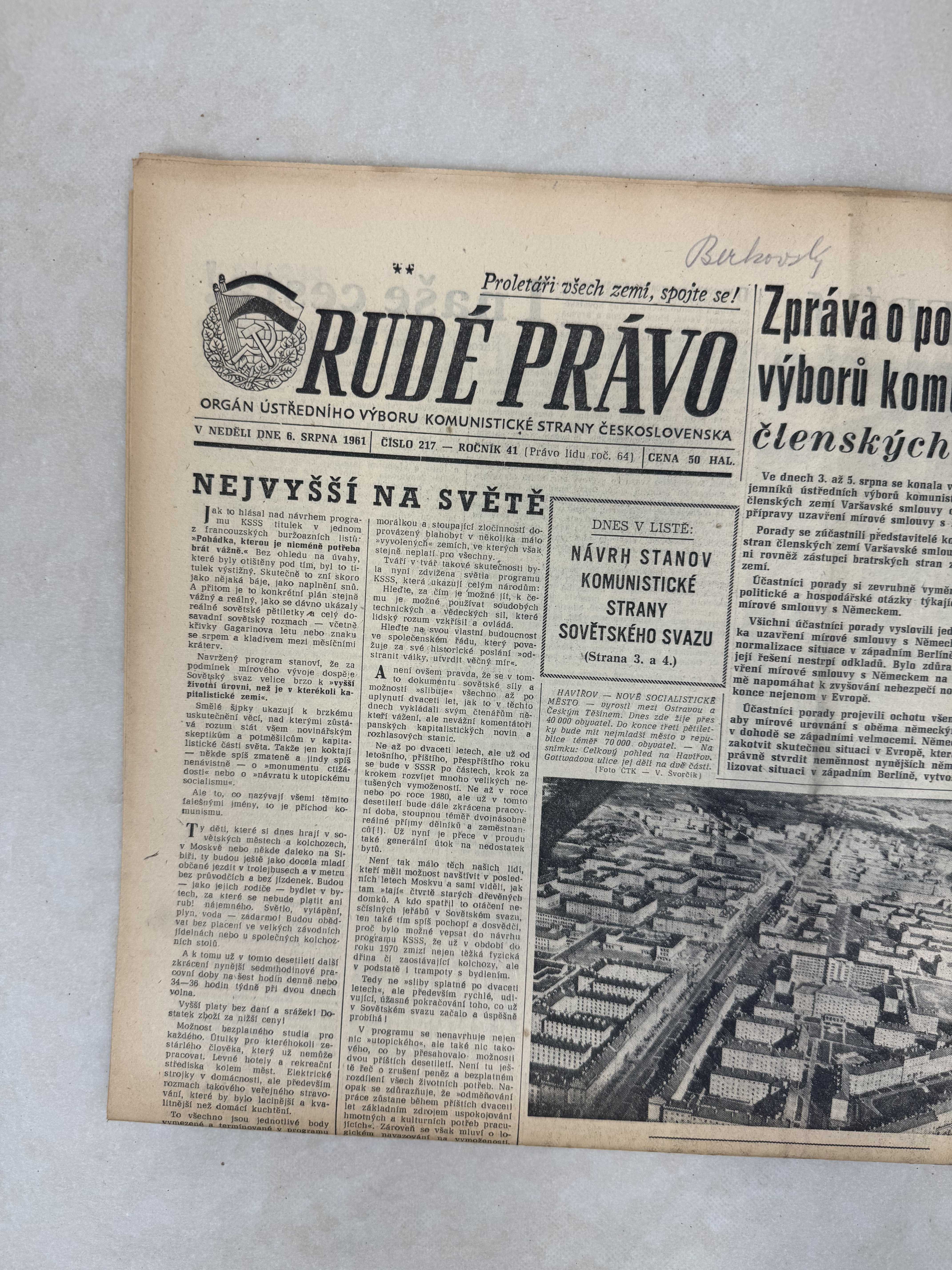 Rudé právo 6.8.1961