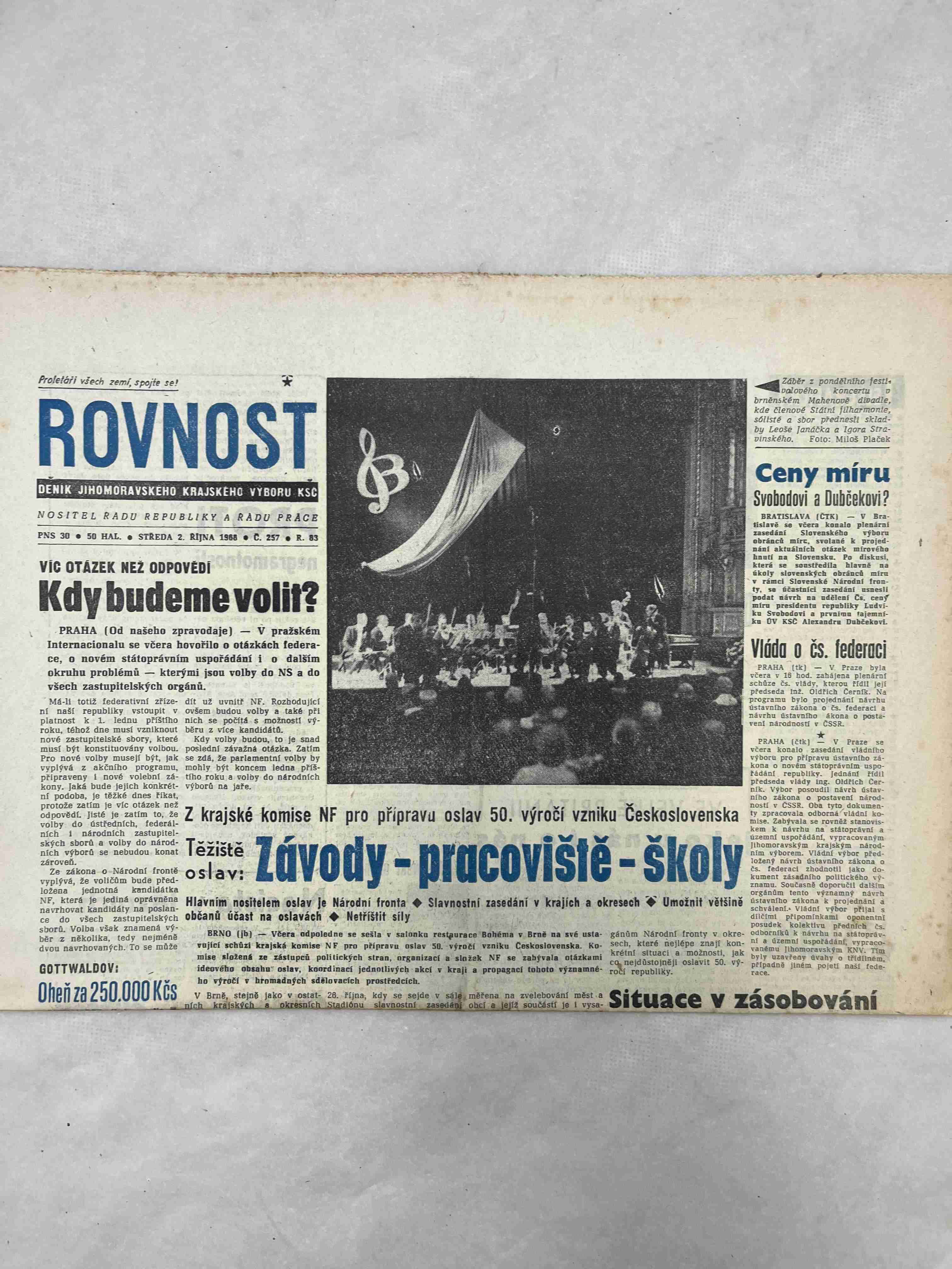 Originální dobový výtisk novin, nejedná se o reprodukci!