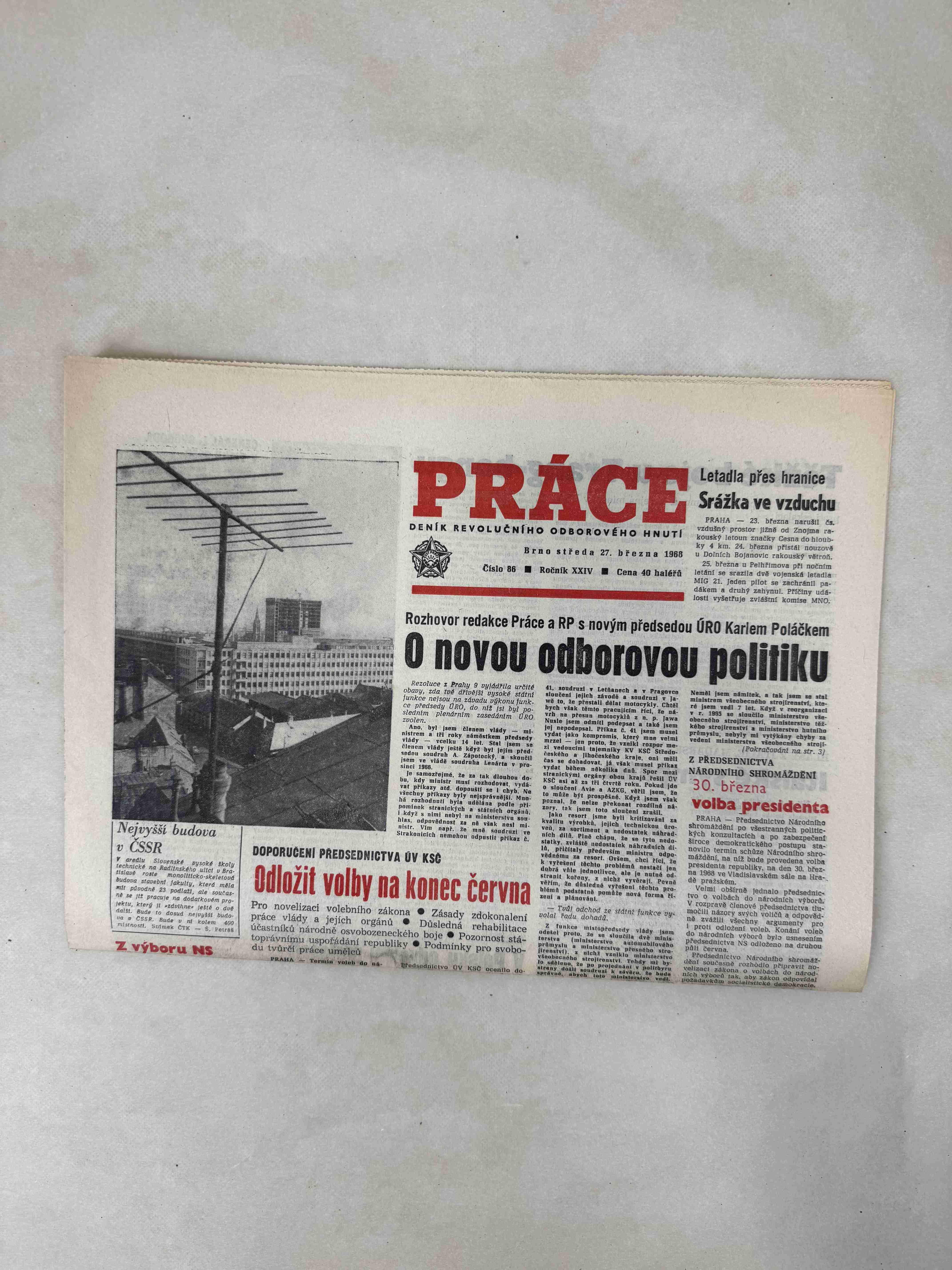 Originální dobový výtisk novin, nejedná se o reprodukci!