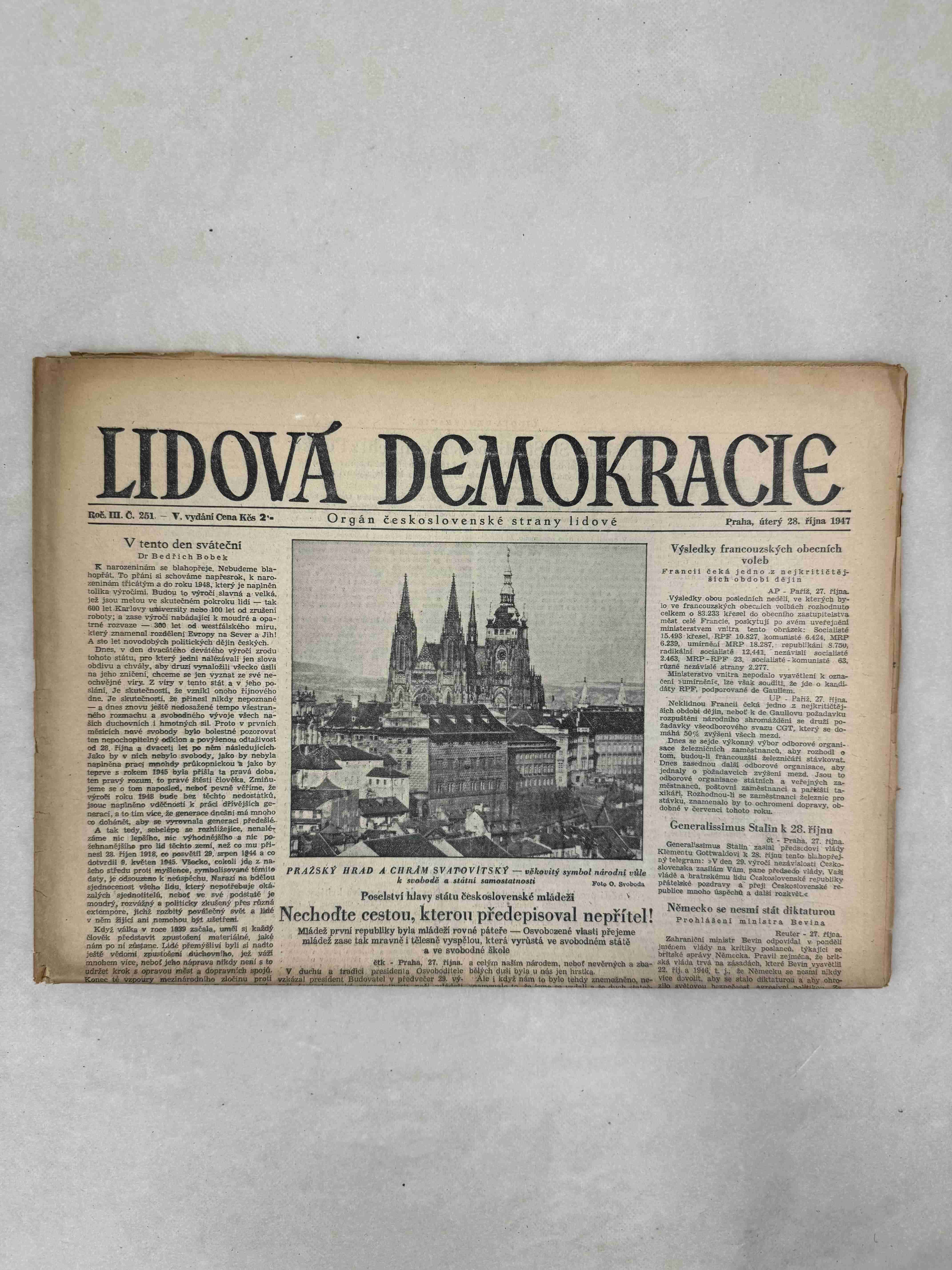 Originální dobový výtisk novin, nejedná se o reprodukci!