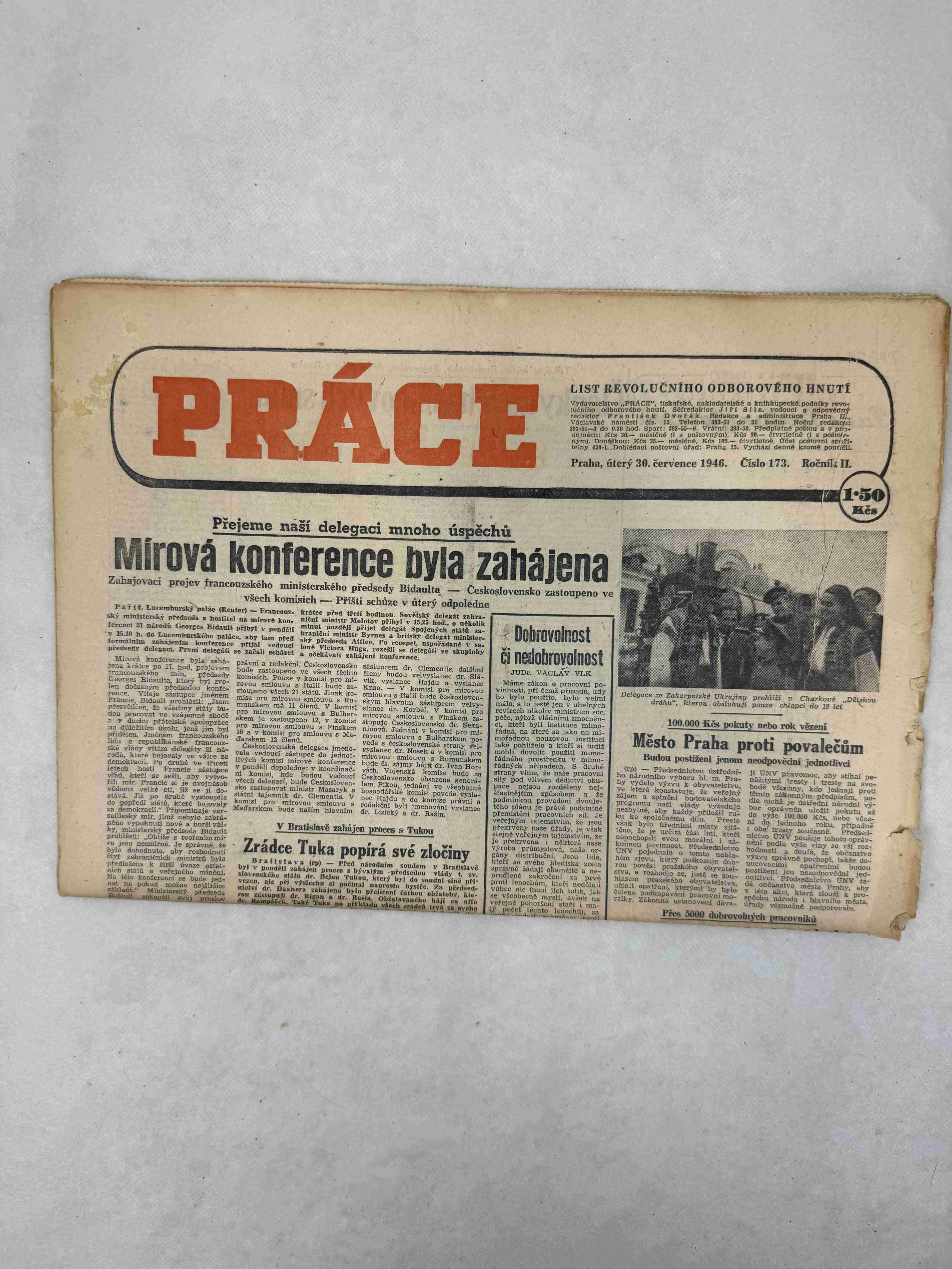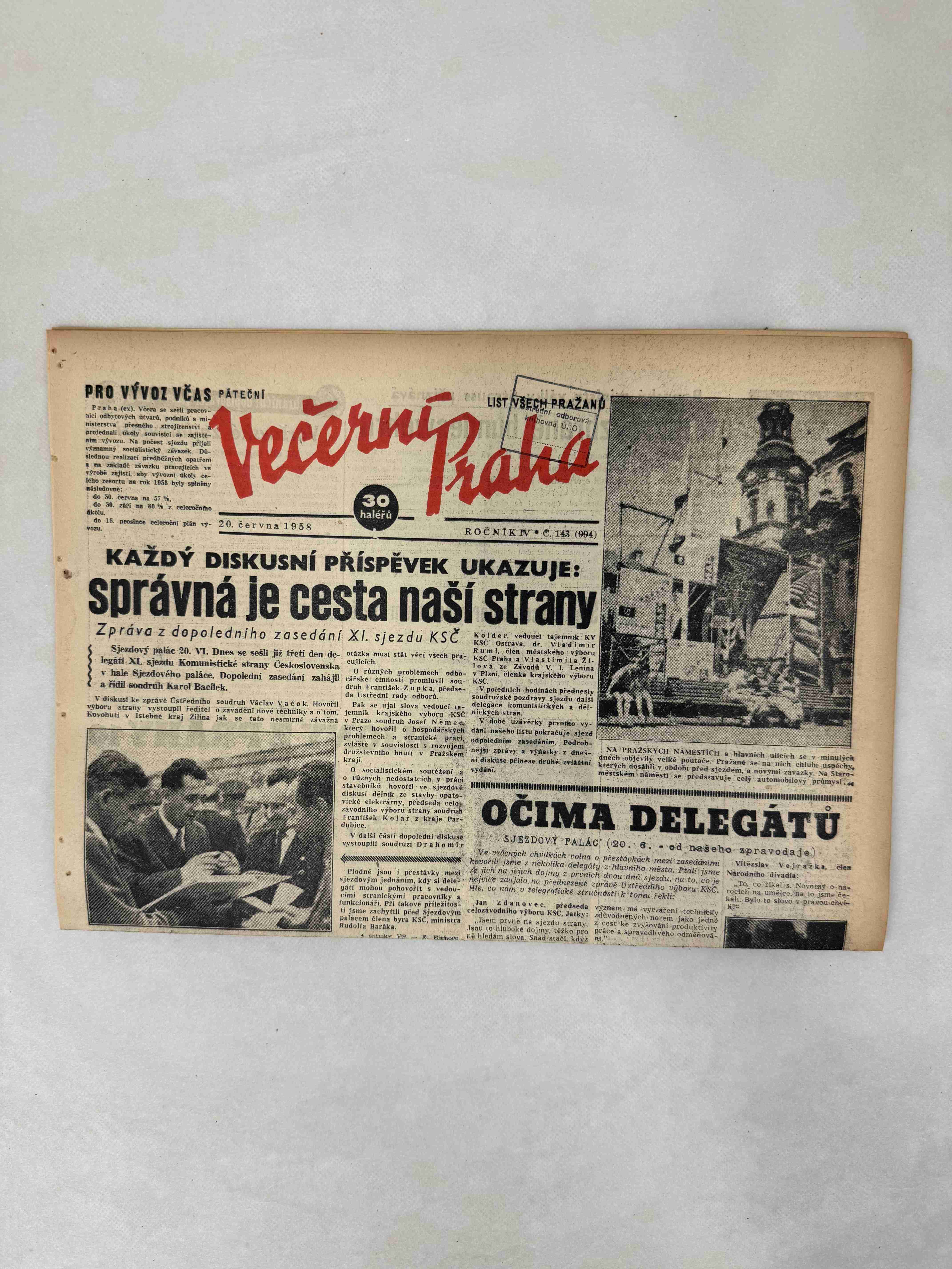 Originální dobový výtisk novin, nejedná se o reprodukci!