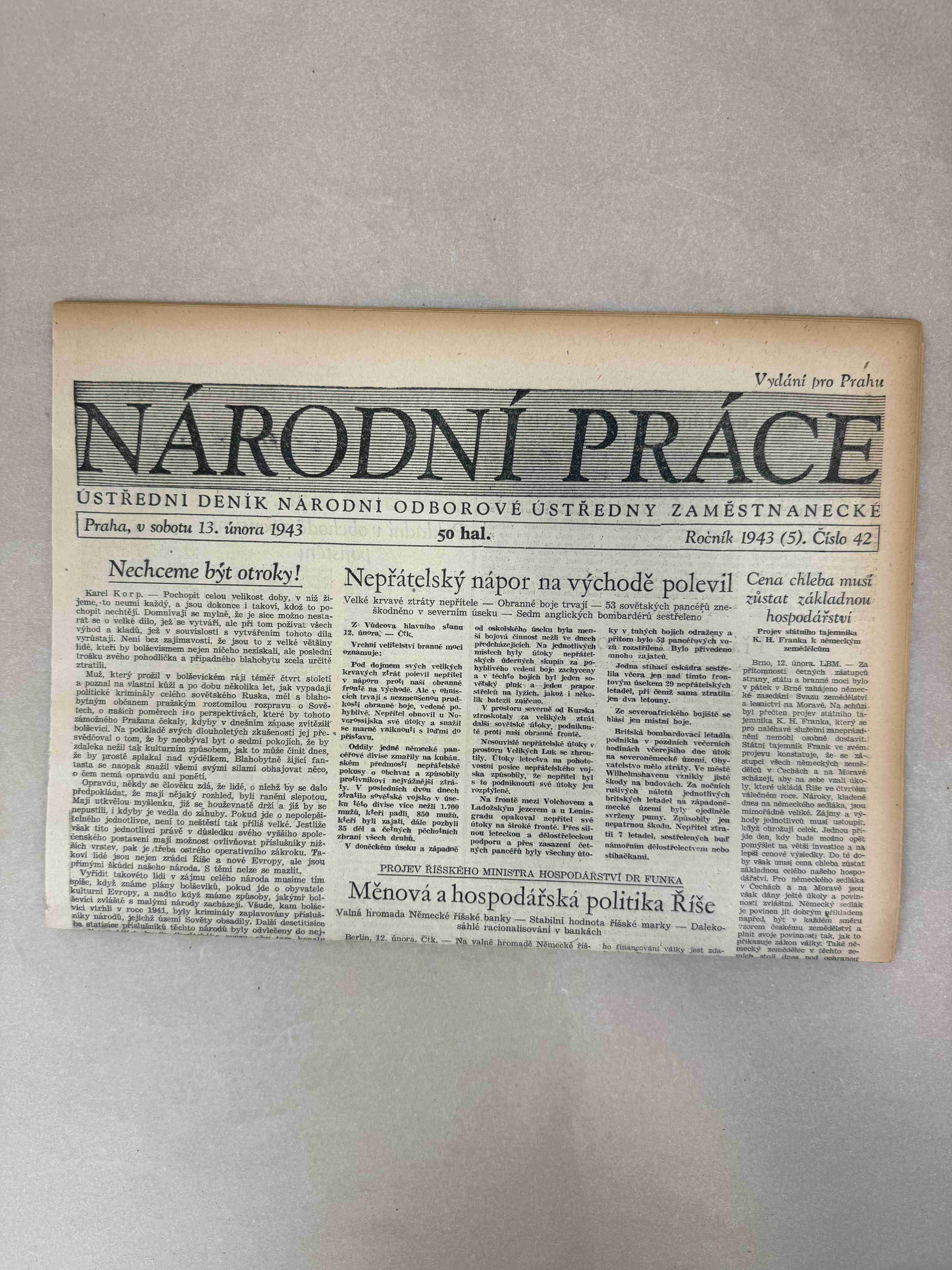 Nabízené noviny jsou určeny výhradně ke sběratelským účelům a neslouží k propagaci jakéhokoliv hnutí směřujícího k potlačení práv a svobod člověka (nacistického, komunistického apod.). Prodávající se distancuje od výše uvedených hnutí a jejich myšlenek.