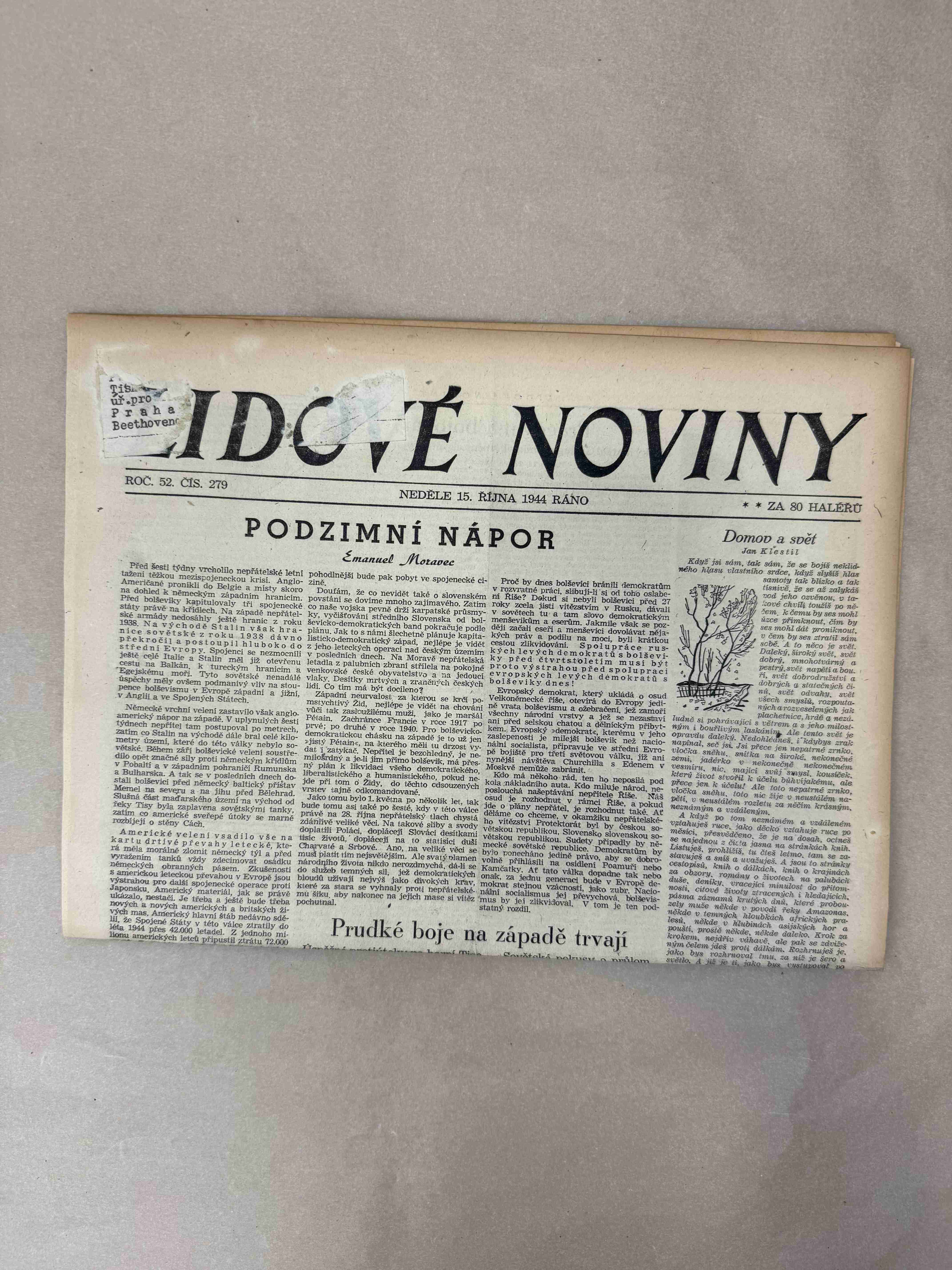 Originální dobový výtisk novin, nejedná se o reprodukci!