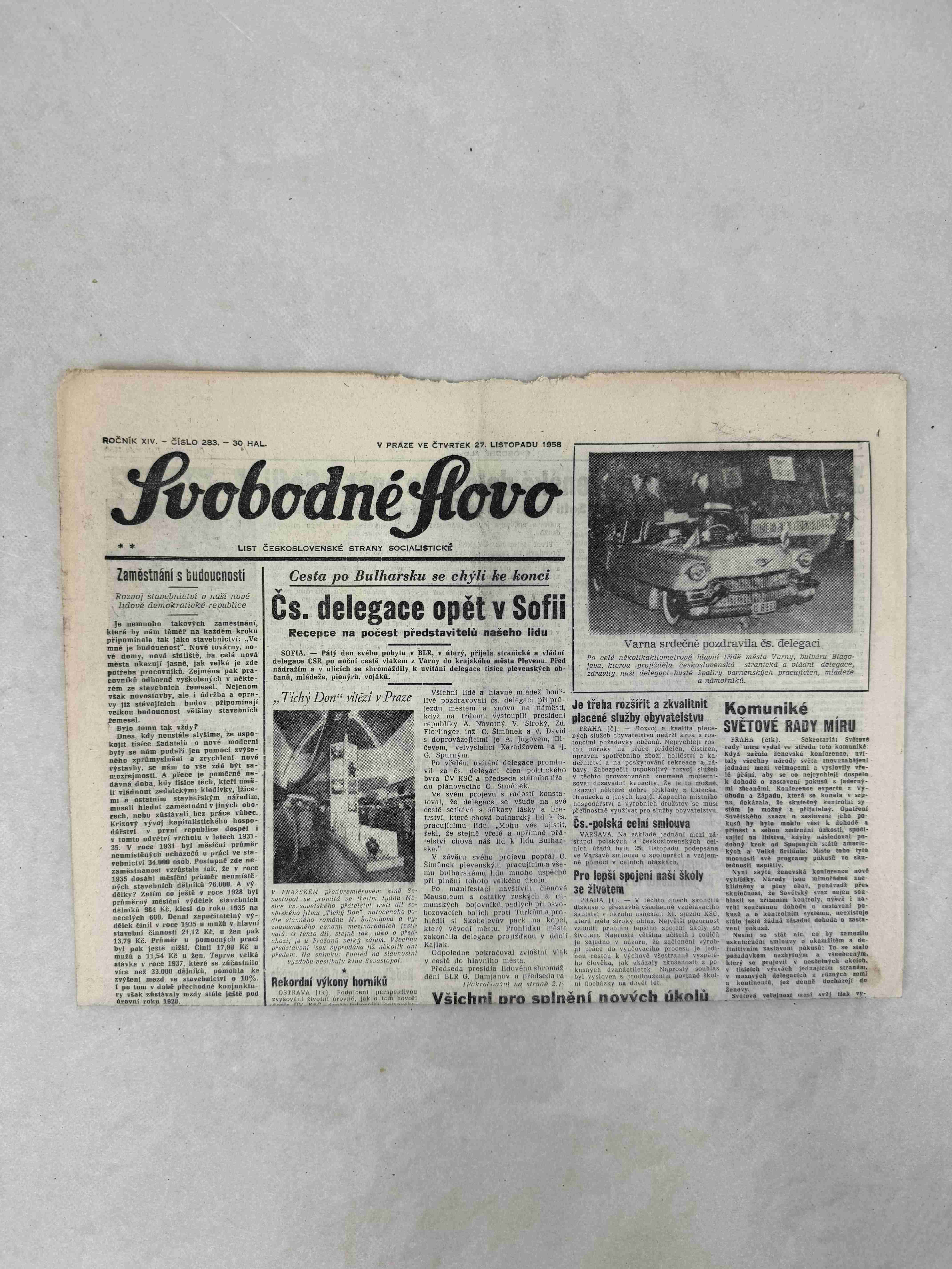 Originální dobový výtisk novin, nejedná se o reprodukci!