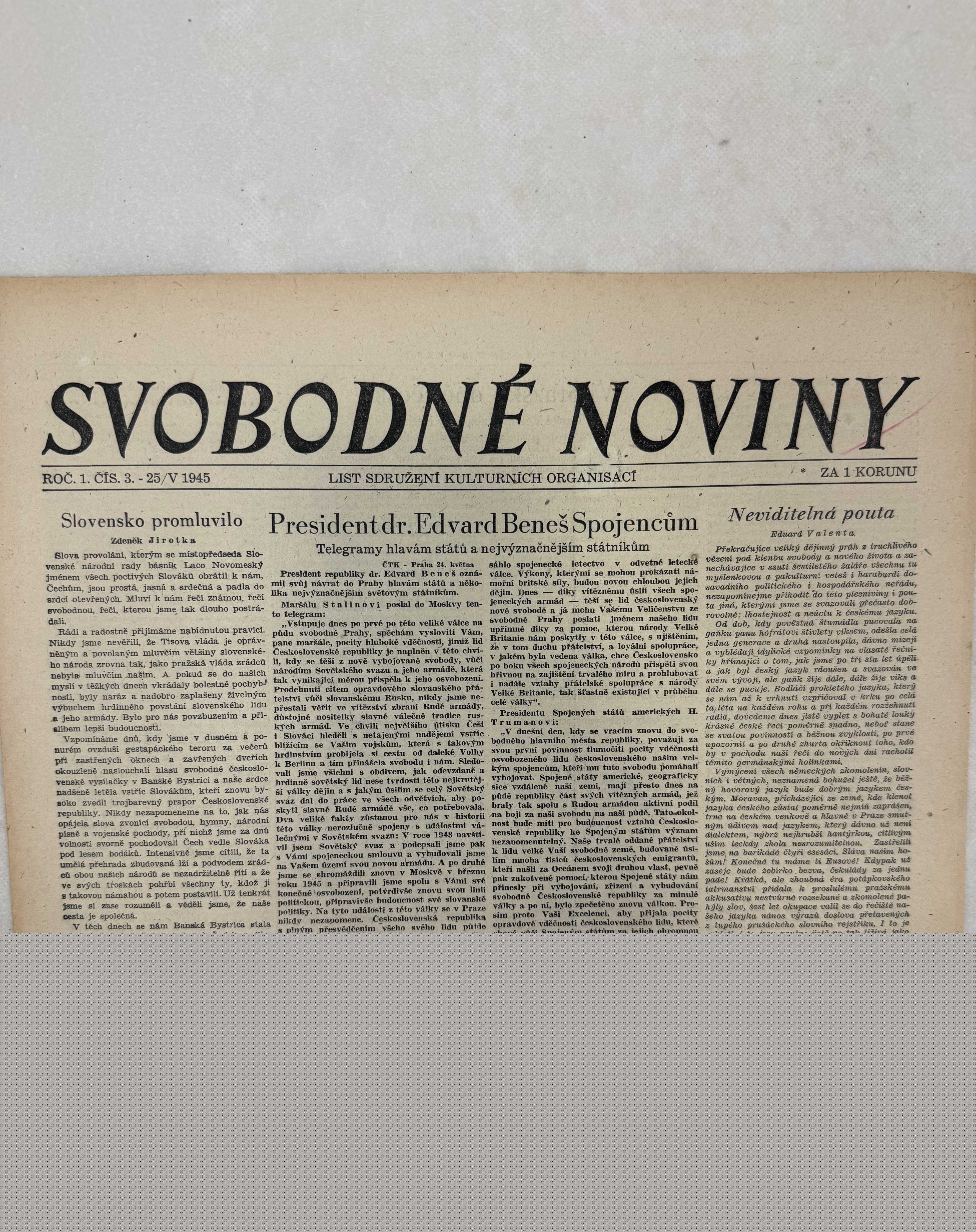Svobodné noviny 25.5.1945