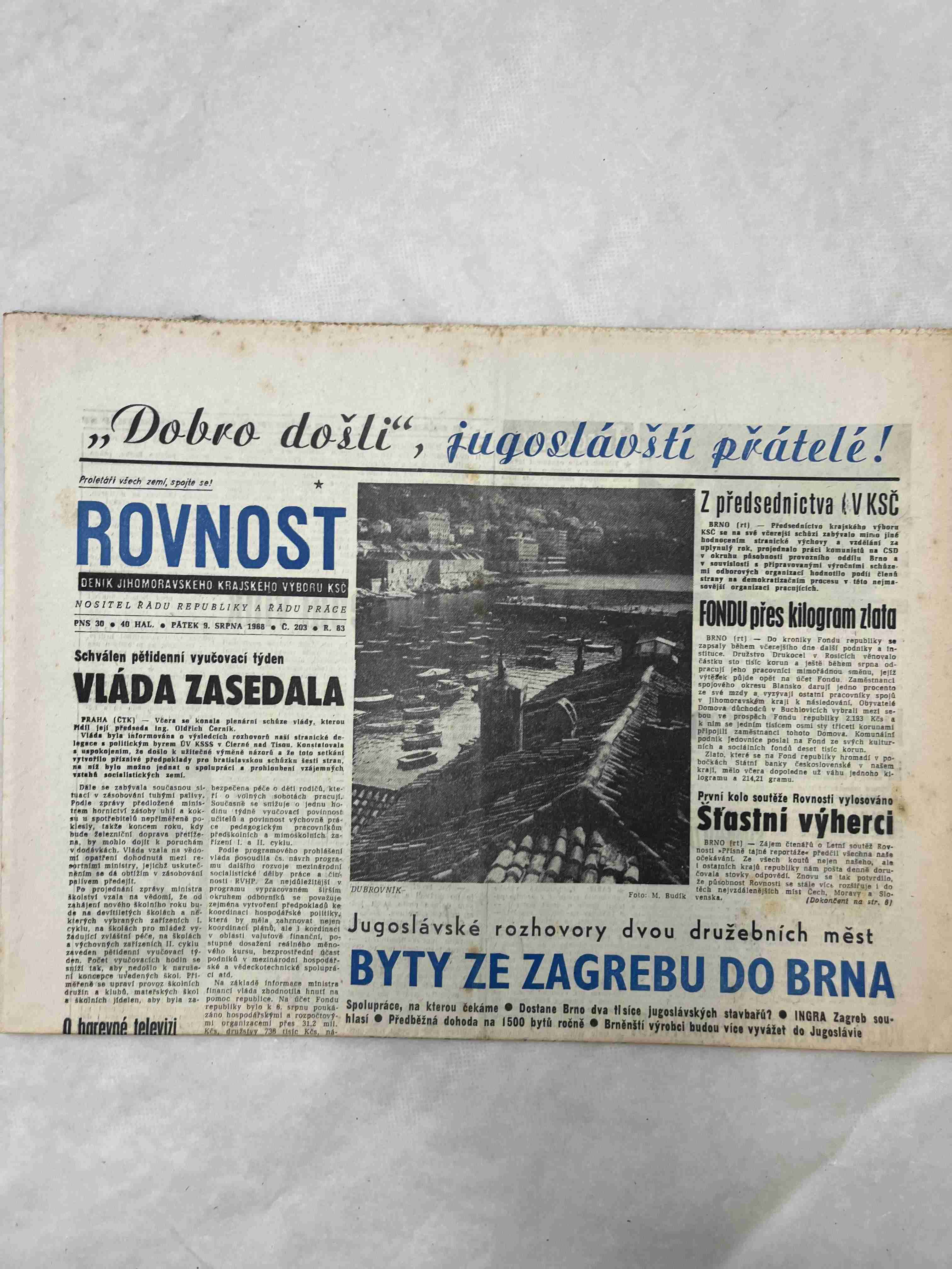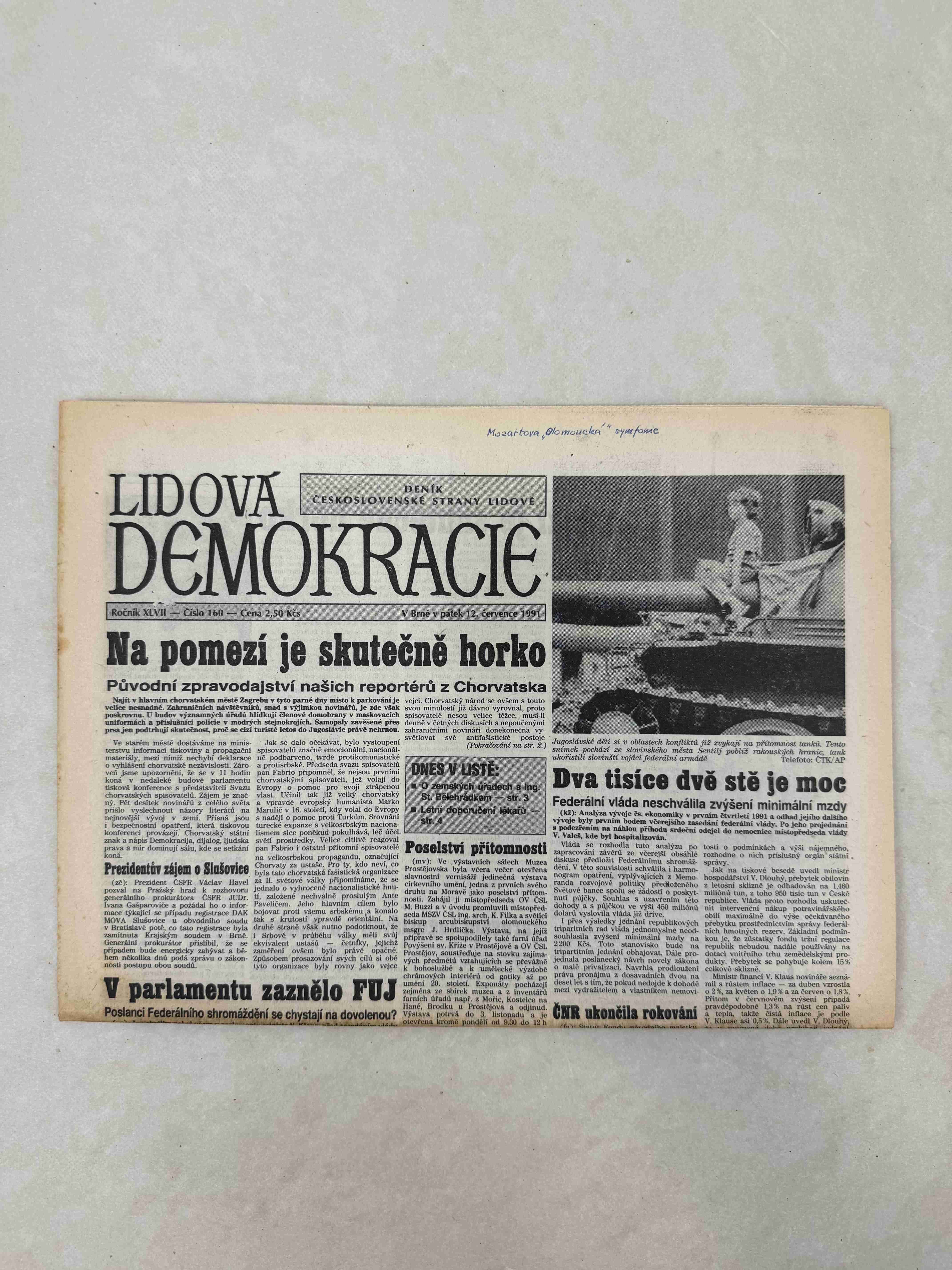 Originální dobový výtisk novin, nejedná se o reprodukci!