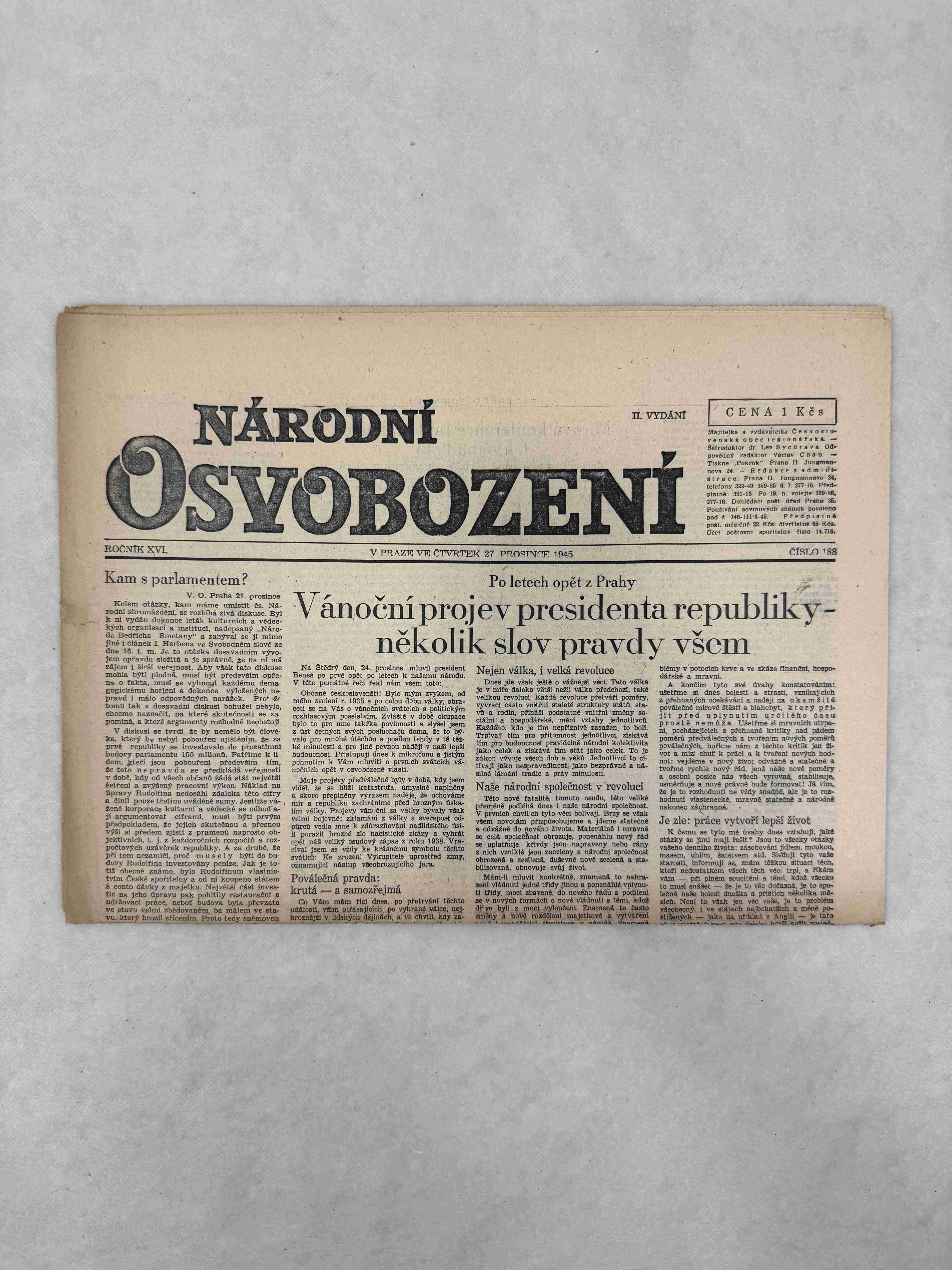 Originální dobový výtisk novin, nejedná se o reprodukci!