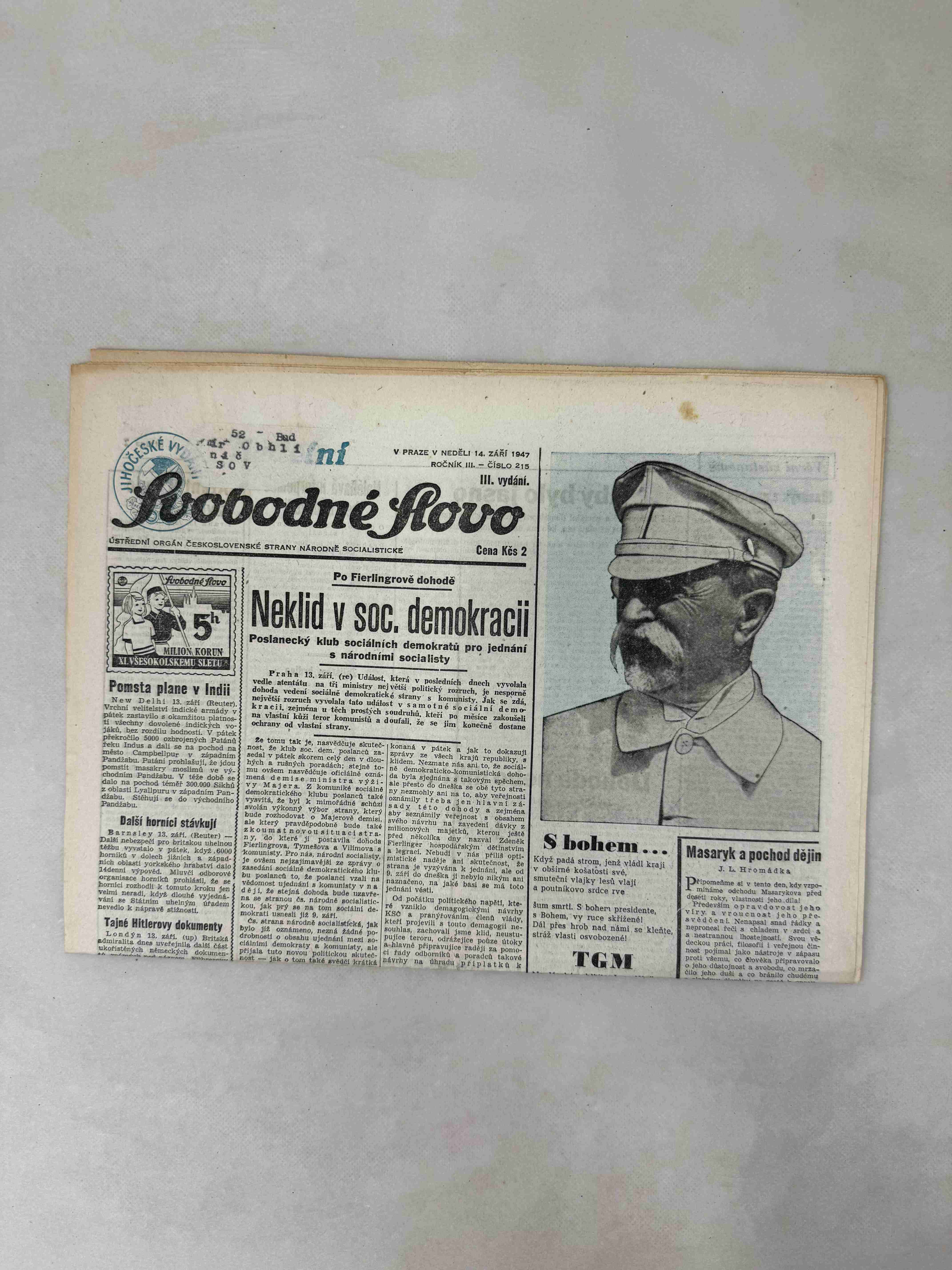 Originální dobový výtisk novin, nejedná se o reprodukci!