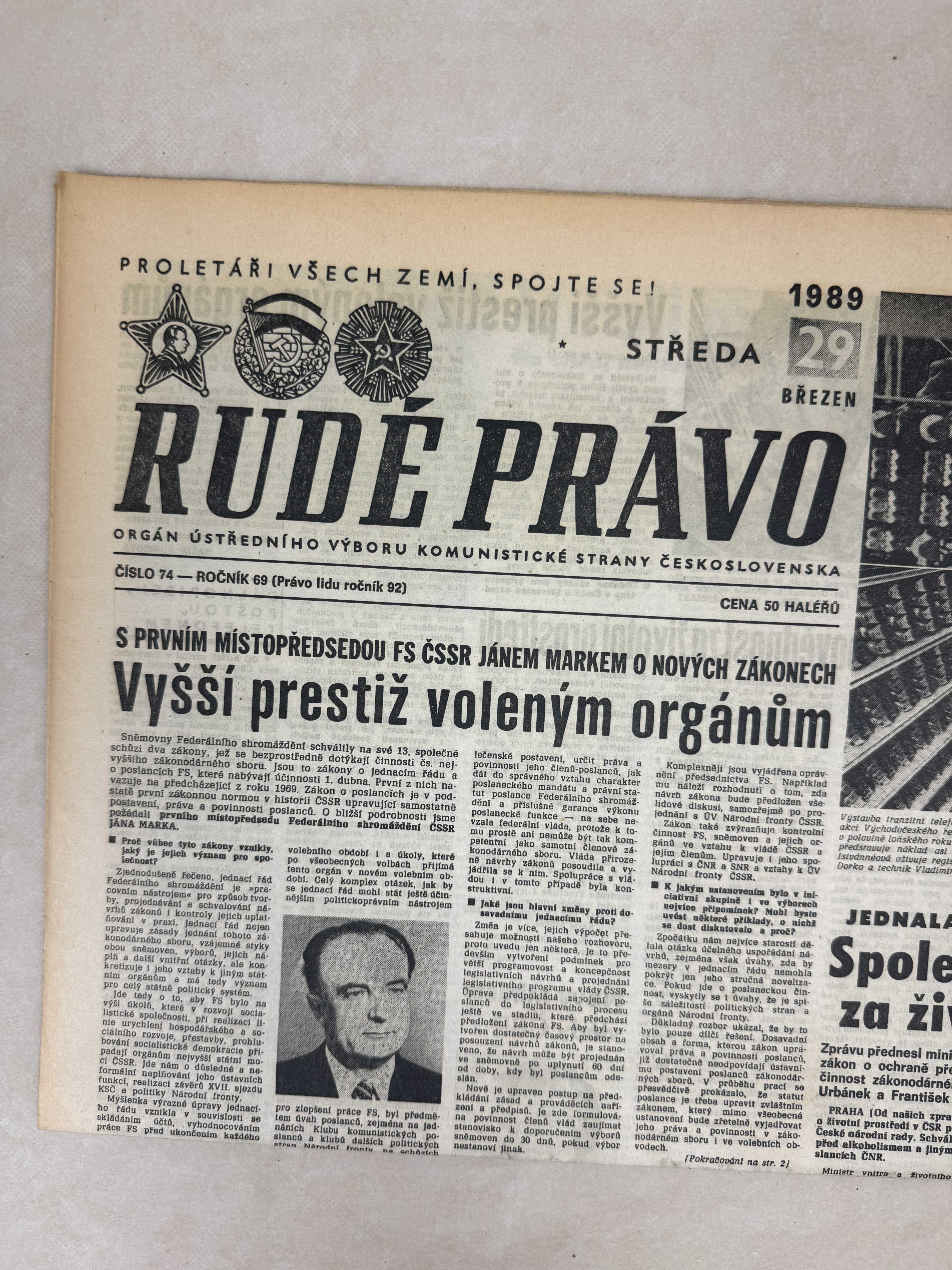 Rudé právo 29.3.1989