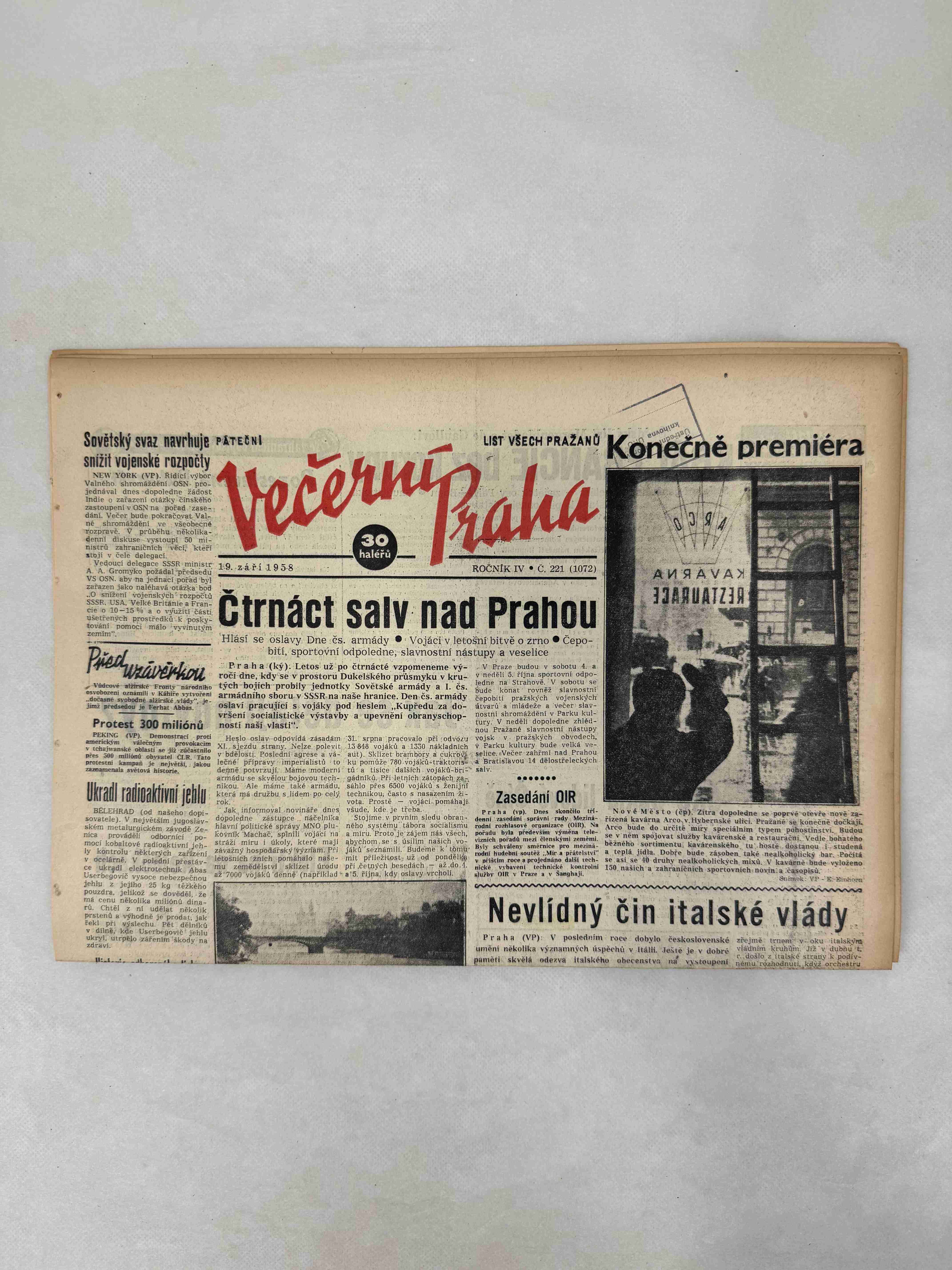 Originální dobový výtisk novin, nejedná se o reprodukci!