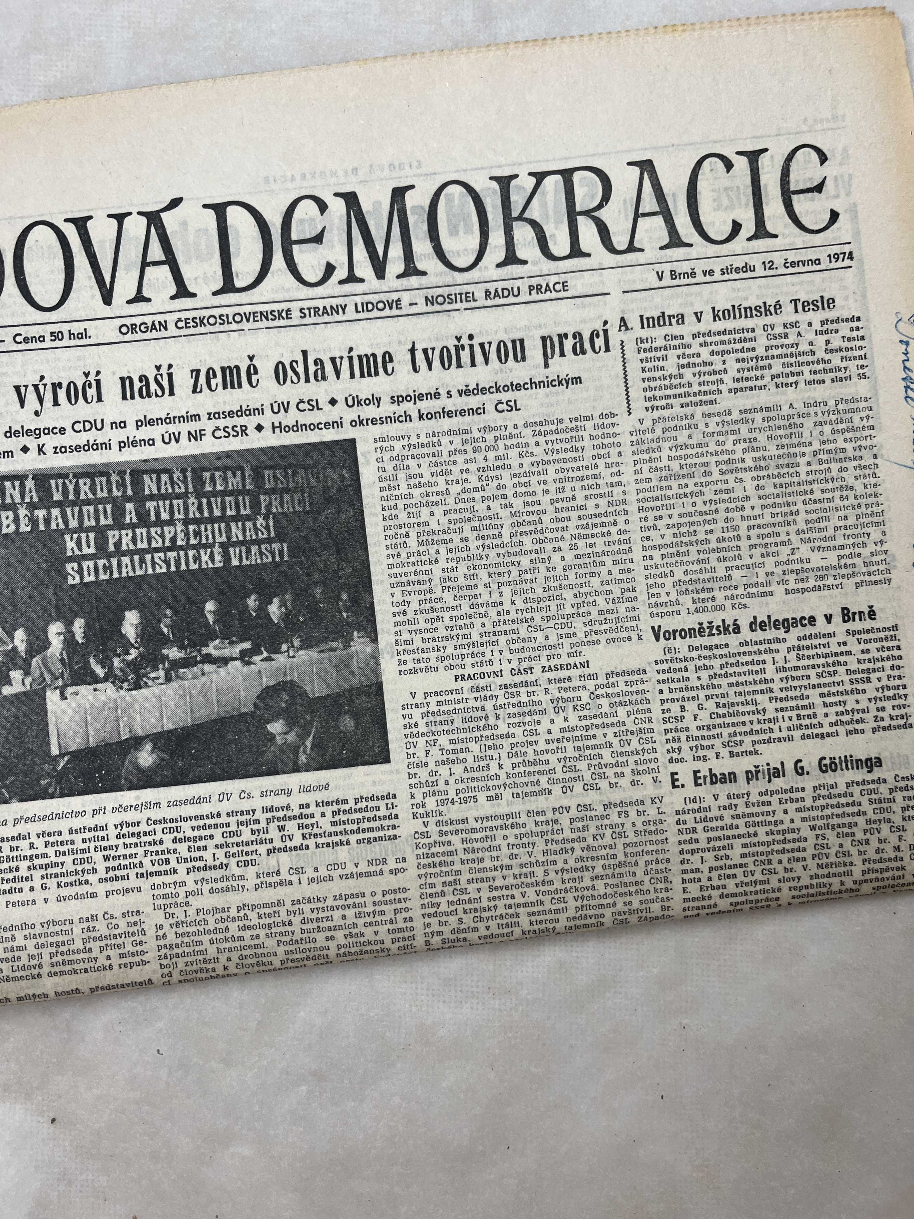 Noviny Lidová demokracie 12.6.1974