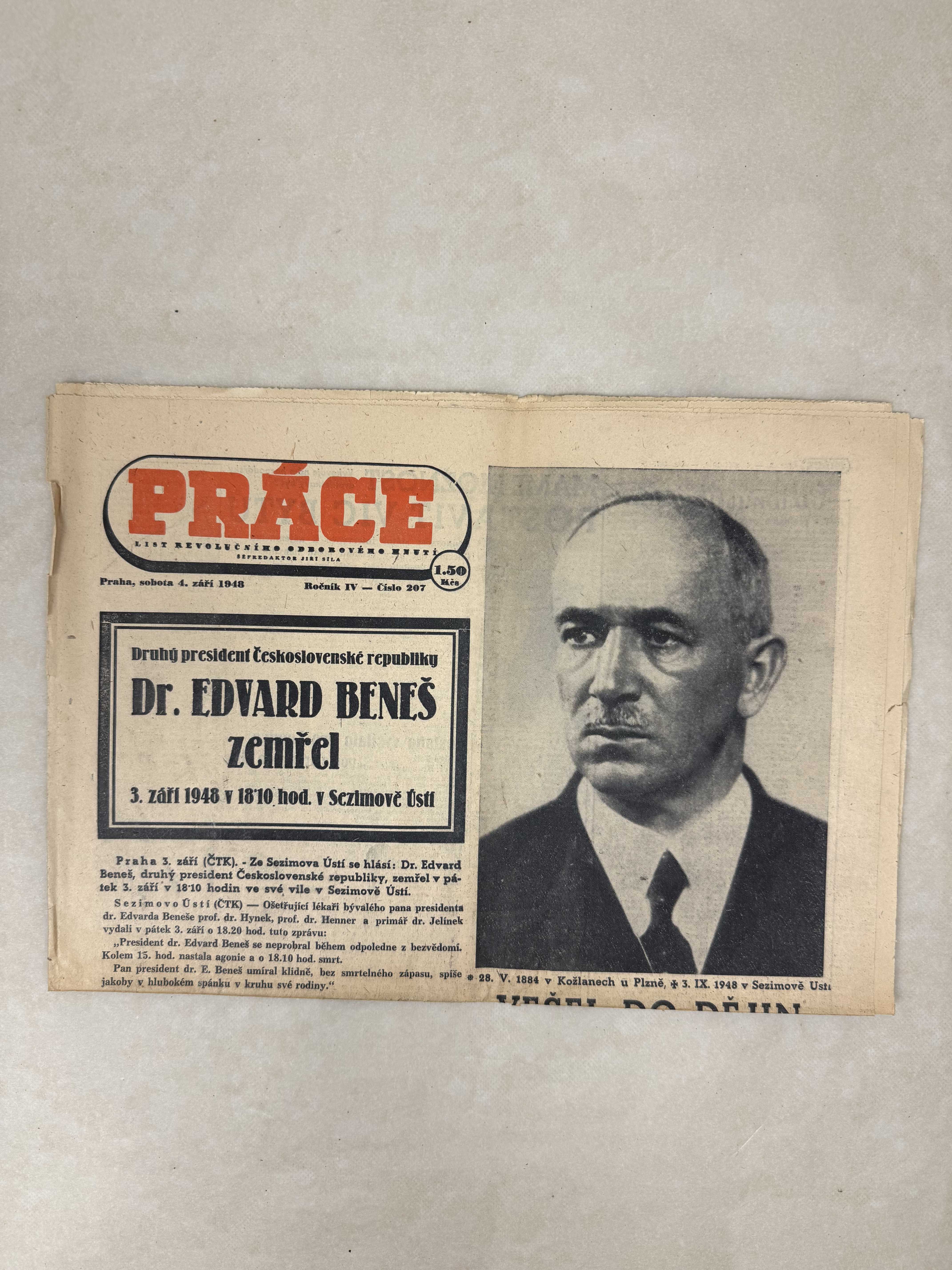 Originální dobový výtisk novin, nejedná se o reprodukci!