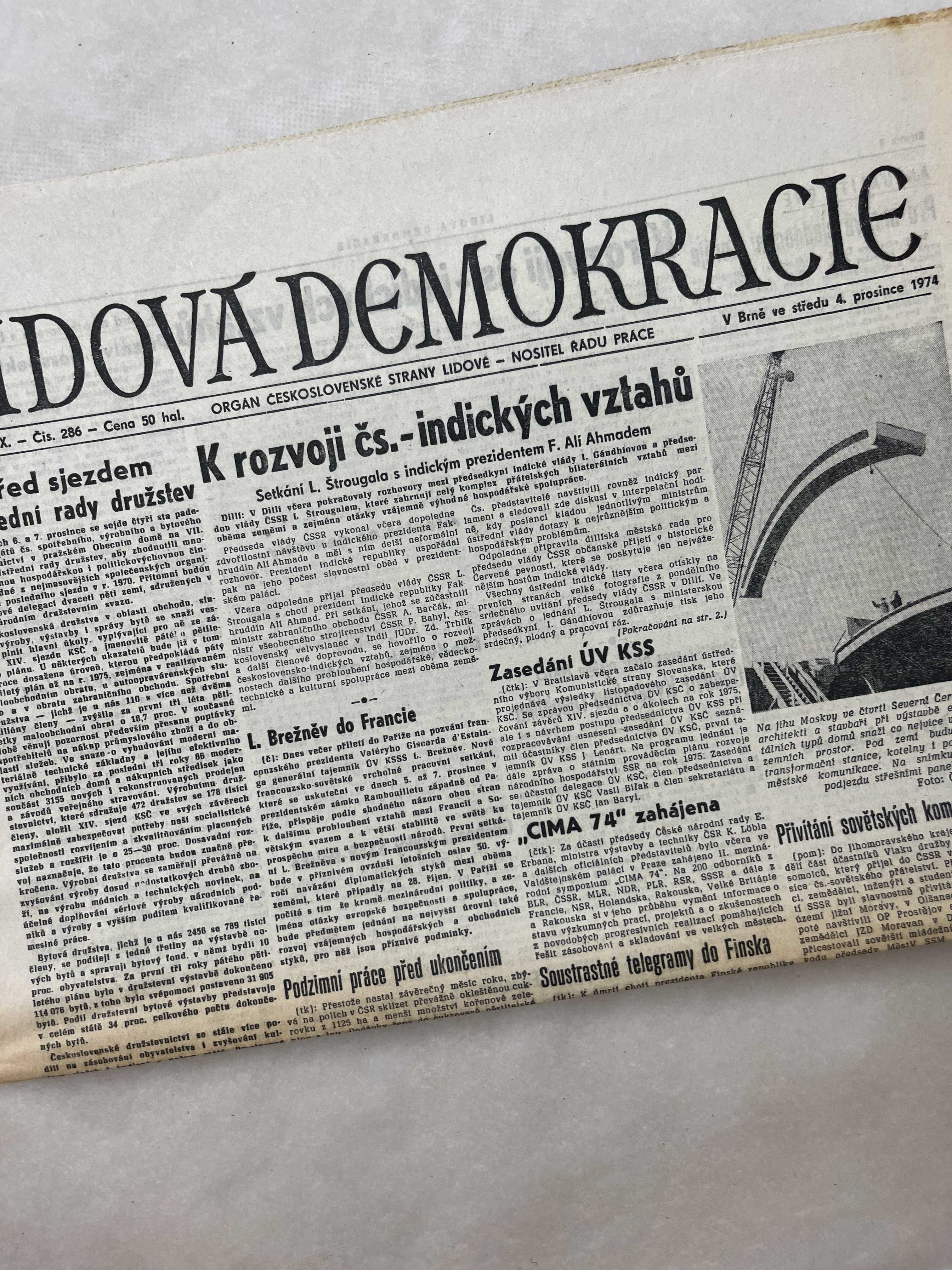 Noviny Lidová demokracie 4.12.1974