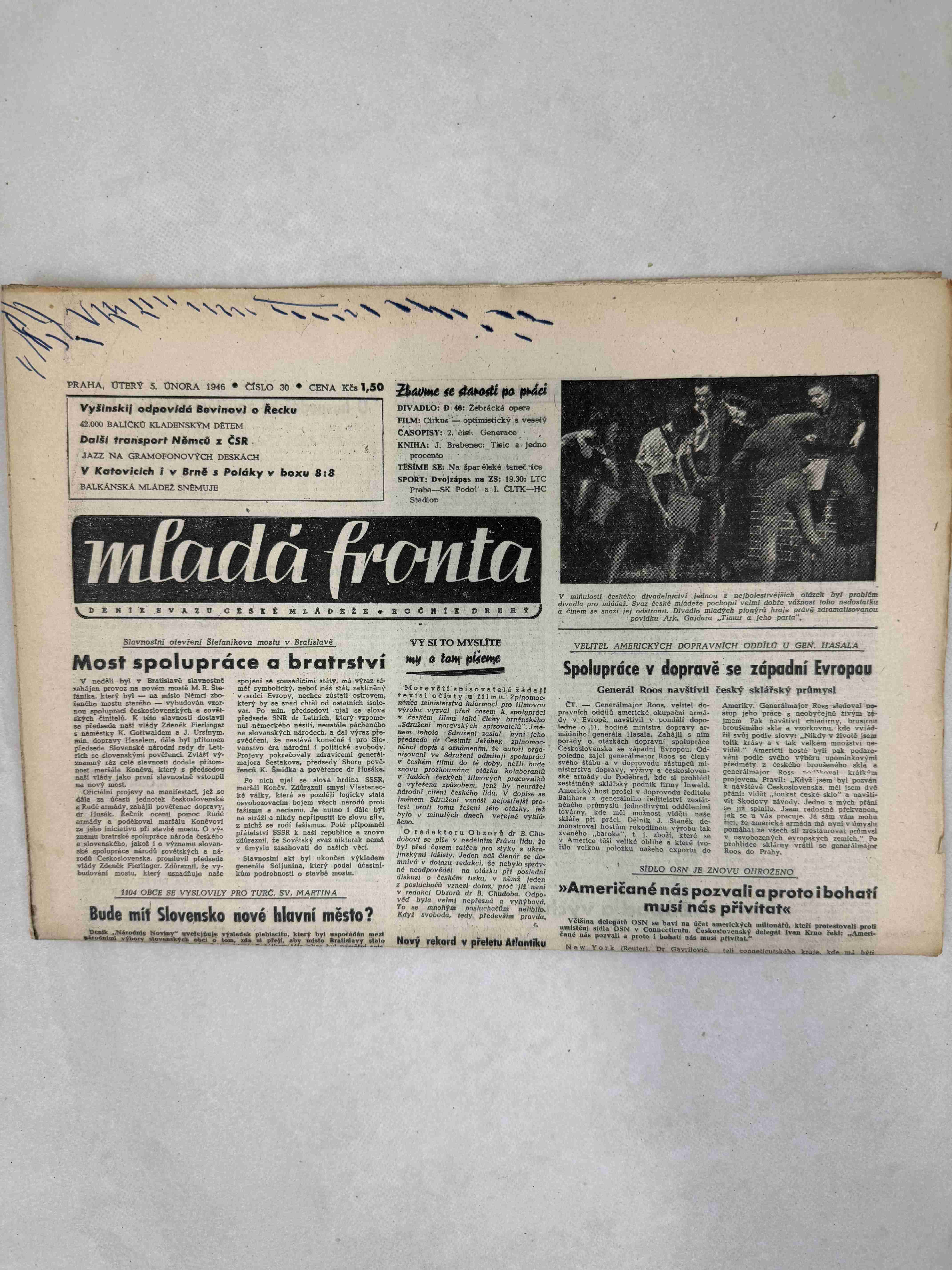 Originální dobový výtisk novin, nejedná se o reprodukci!