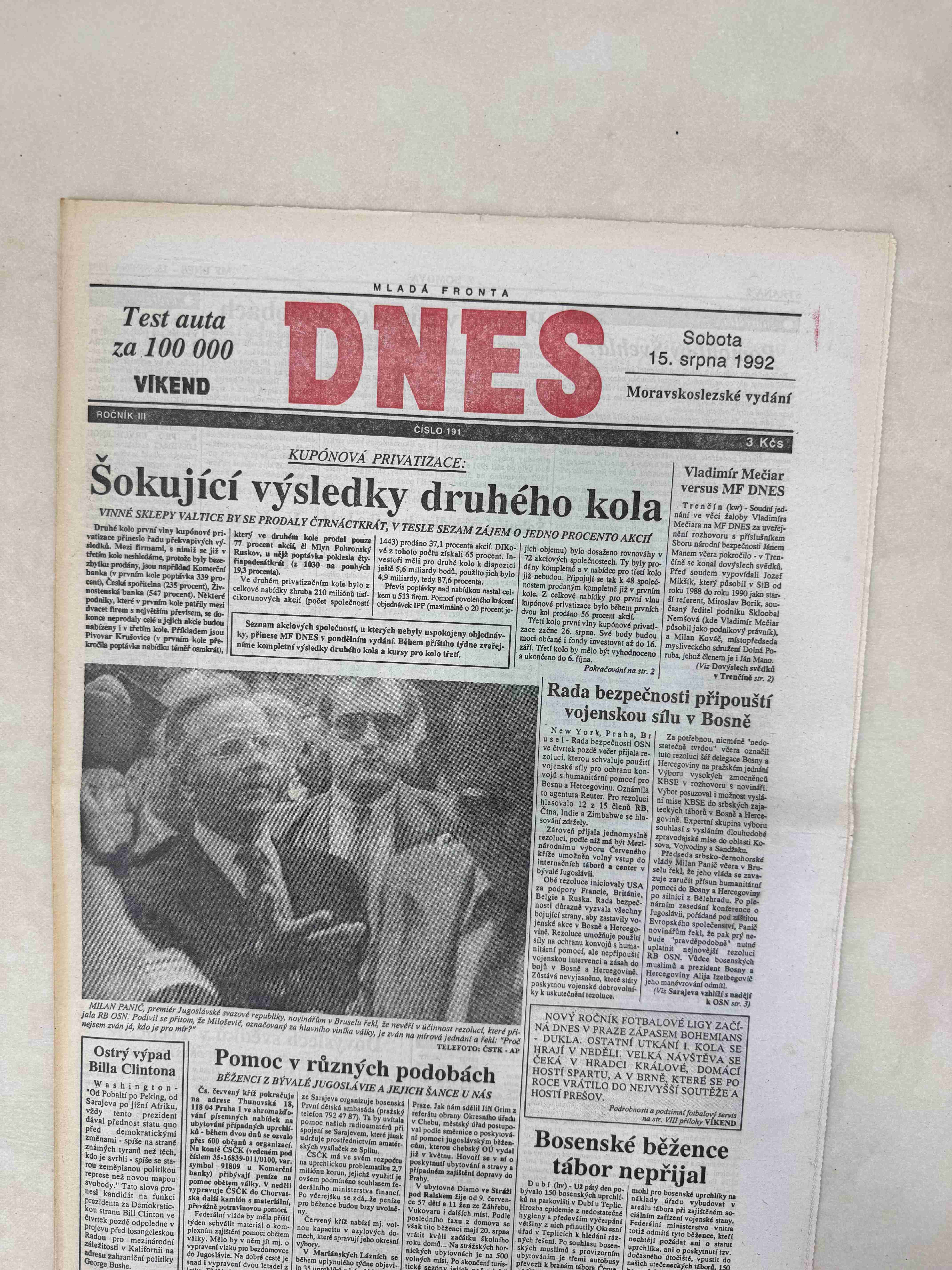 Originální dobový výtisk novin, nejedná se o reprodukci!