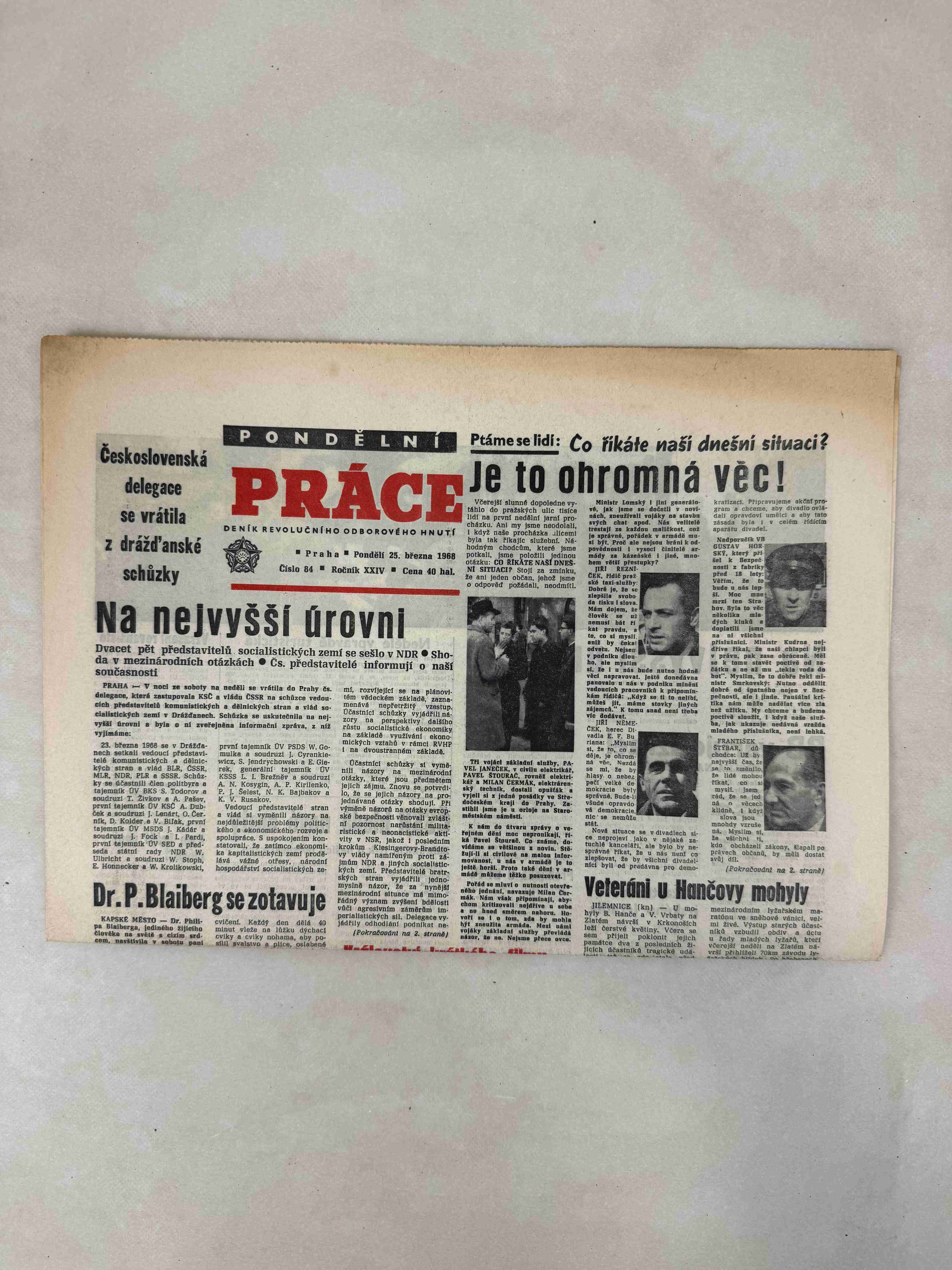 Originální dobový výtisk novin, nejedná se o reprodukci!