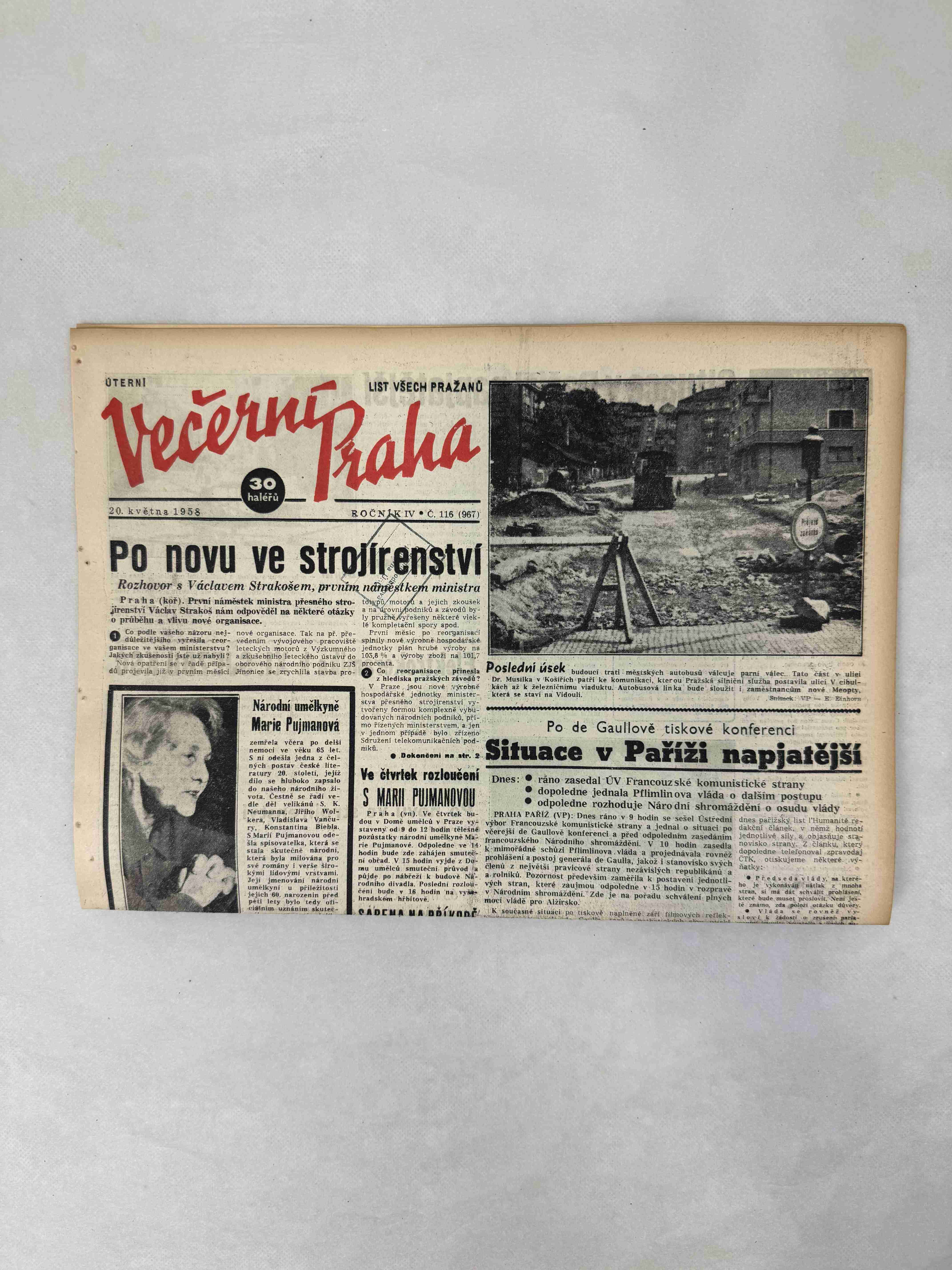 Originální dobový výtisk novin, nejedná se o reprodukci!