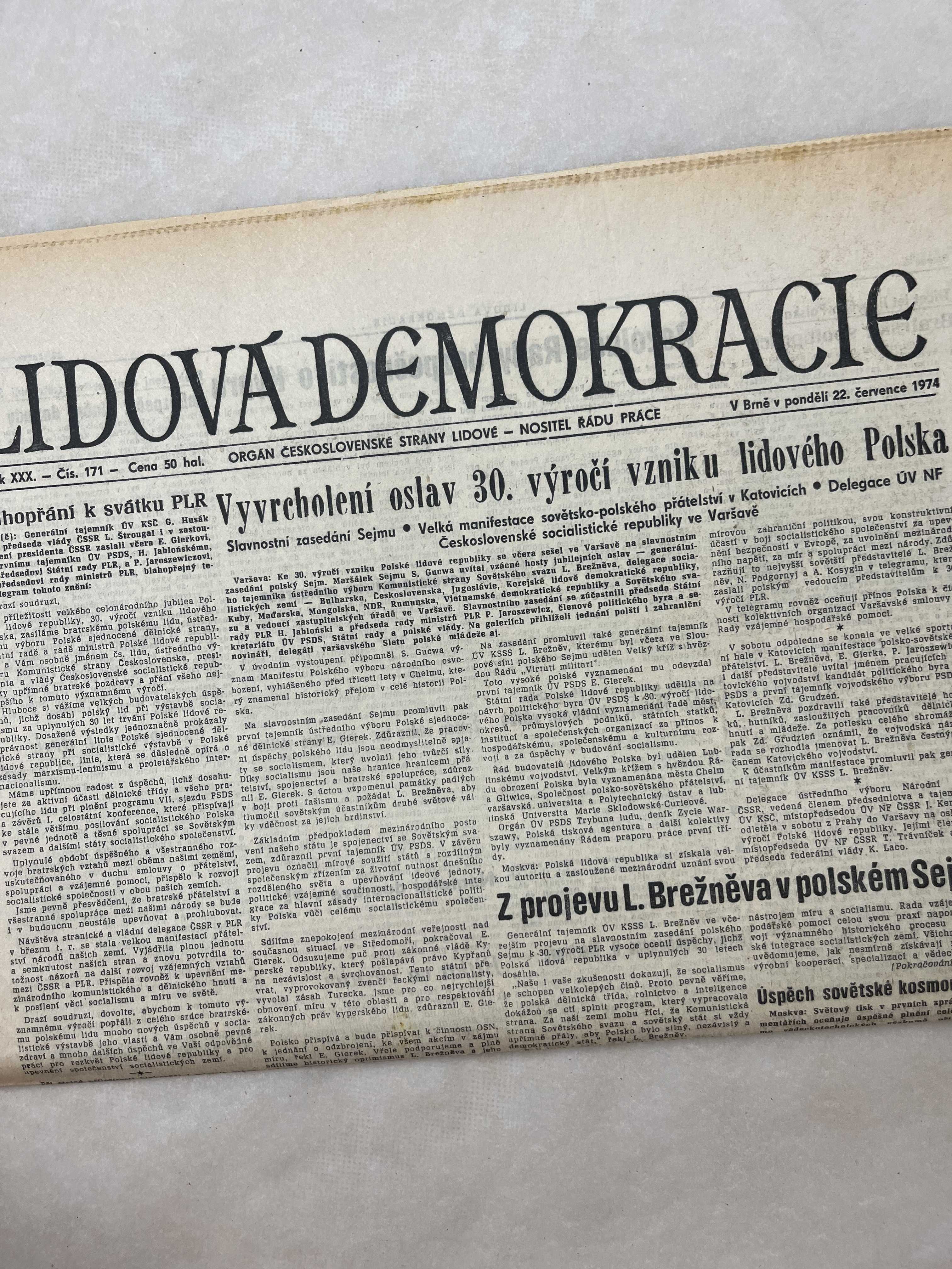 Noviny Lidová demokracie 22.7.1974