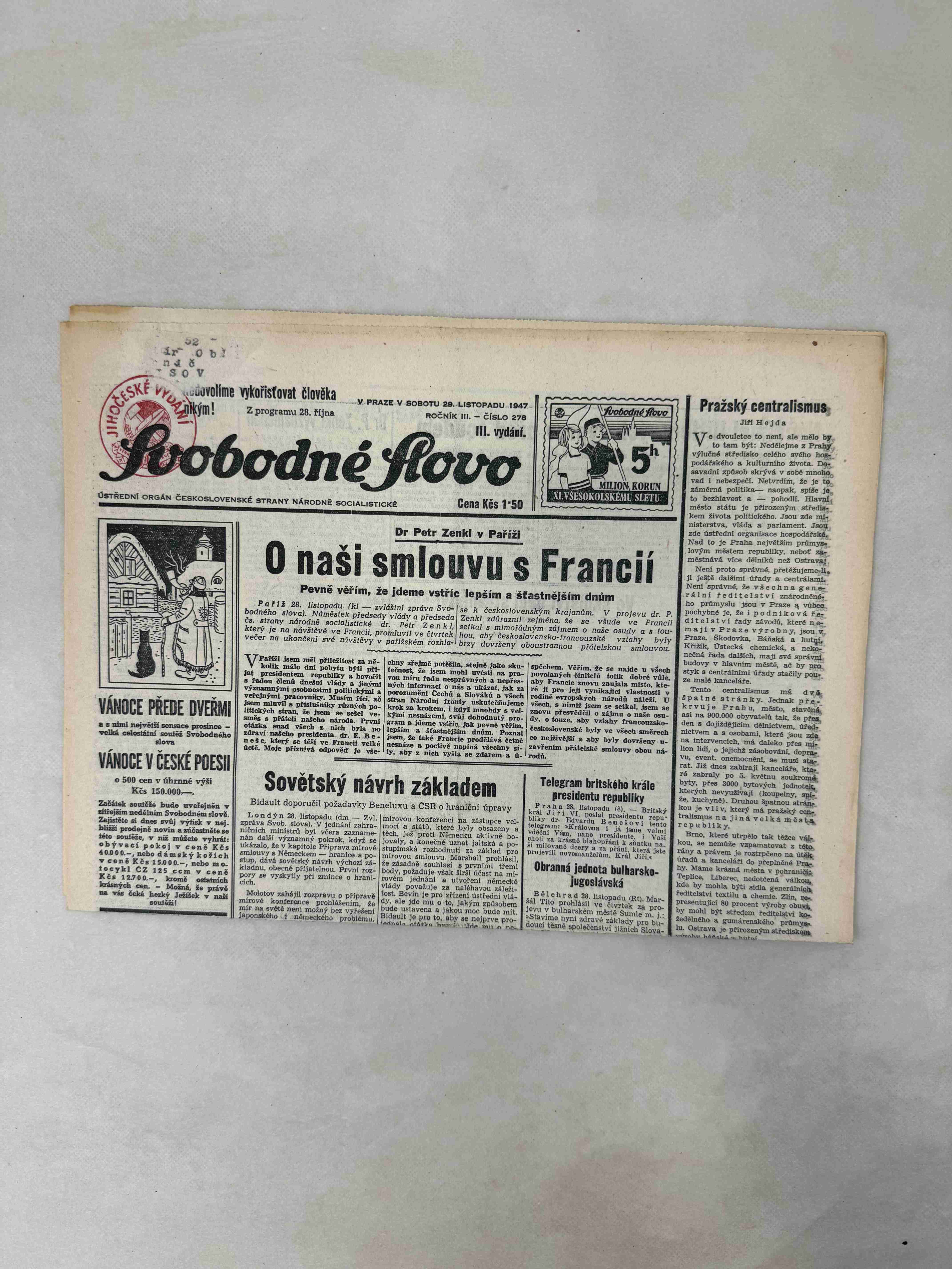Originální dobový výtisk novin, nejedná se o reprodukci!