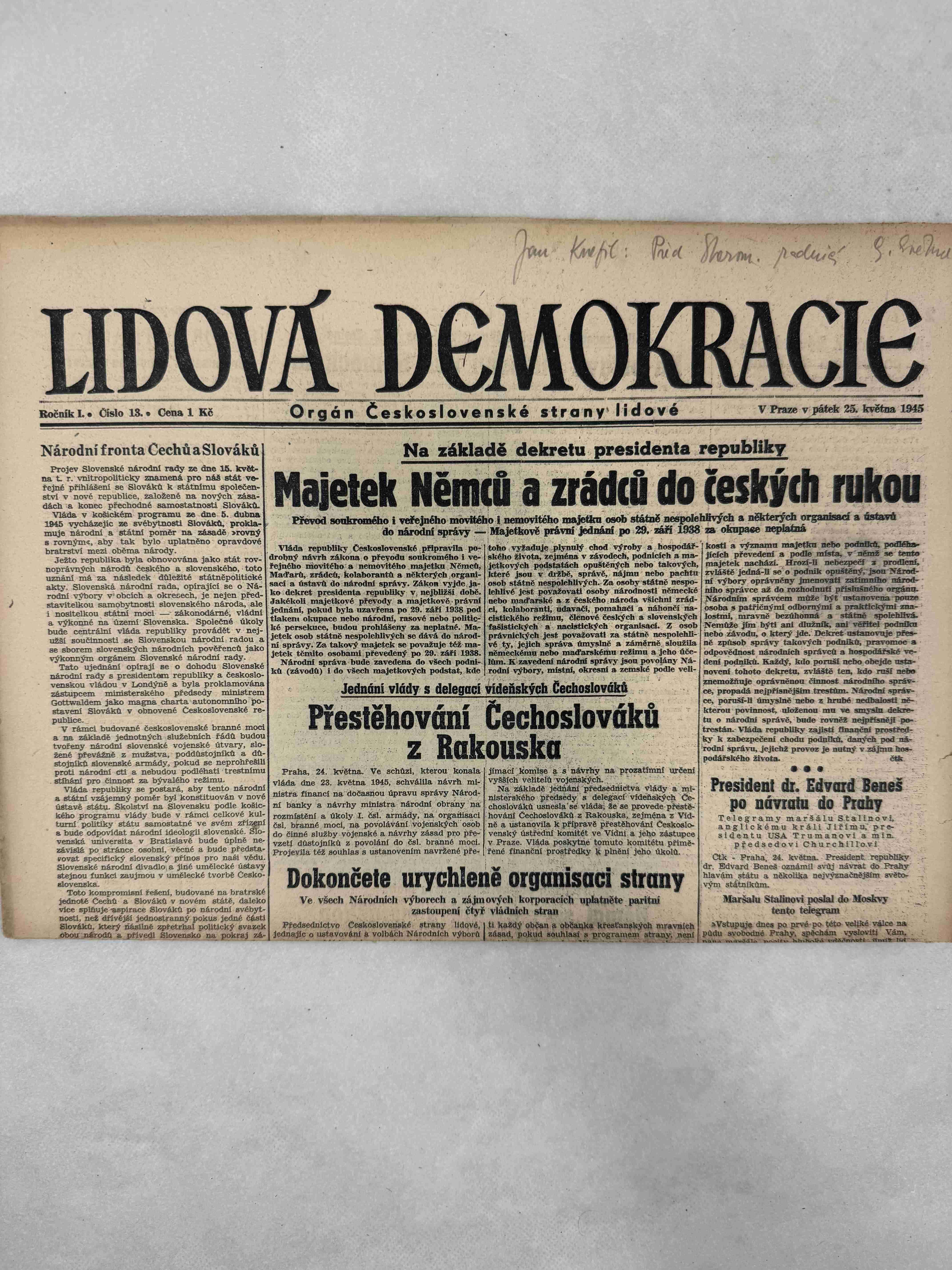 Originální dobový výtisk novin, nejedná se o reprodukci!