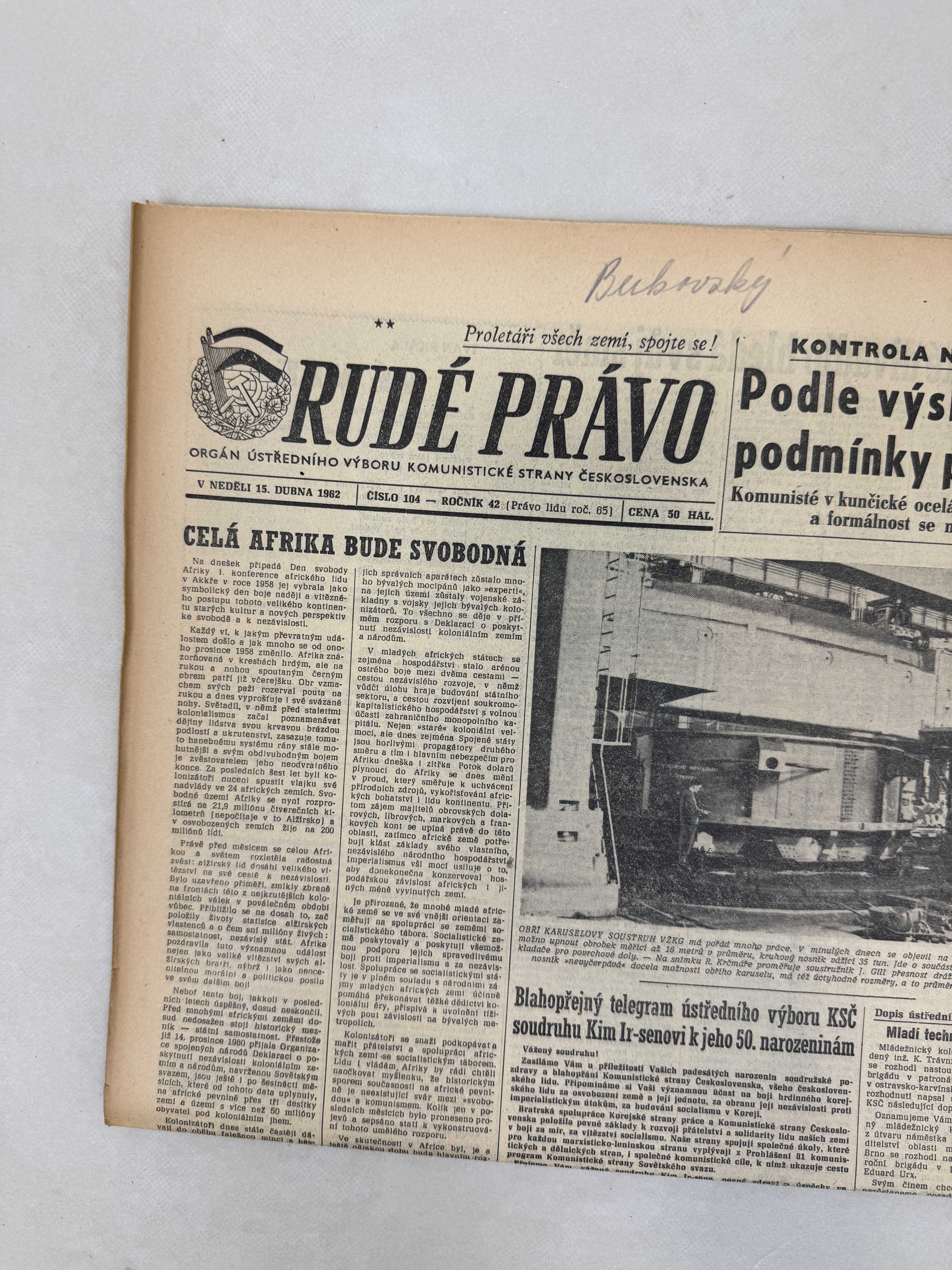 Rudé právo 15.4.1962