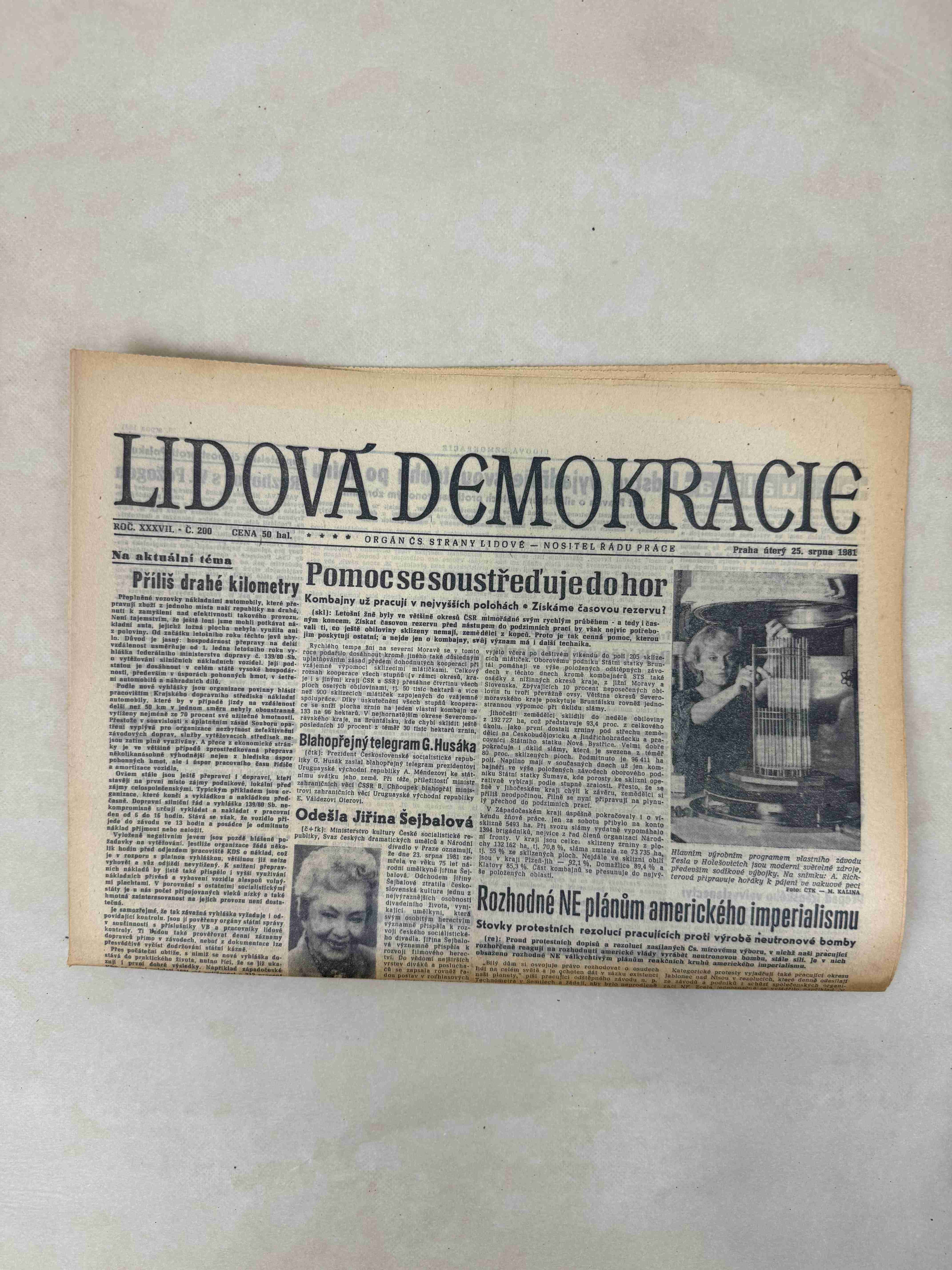Originální dobový výtisk novin, nejedná se o reprodukci!