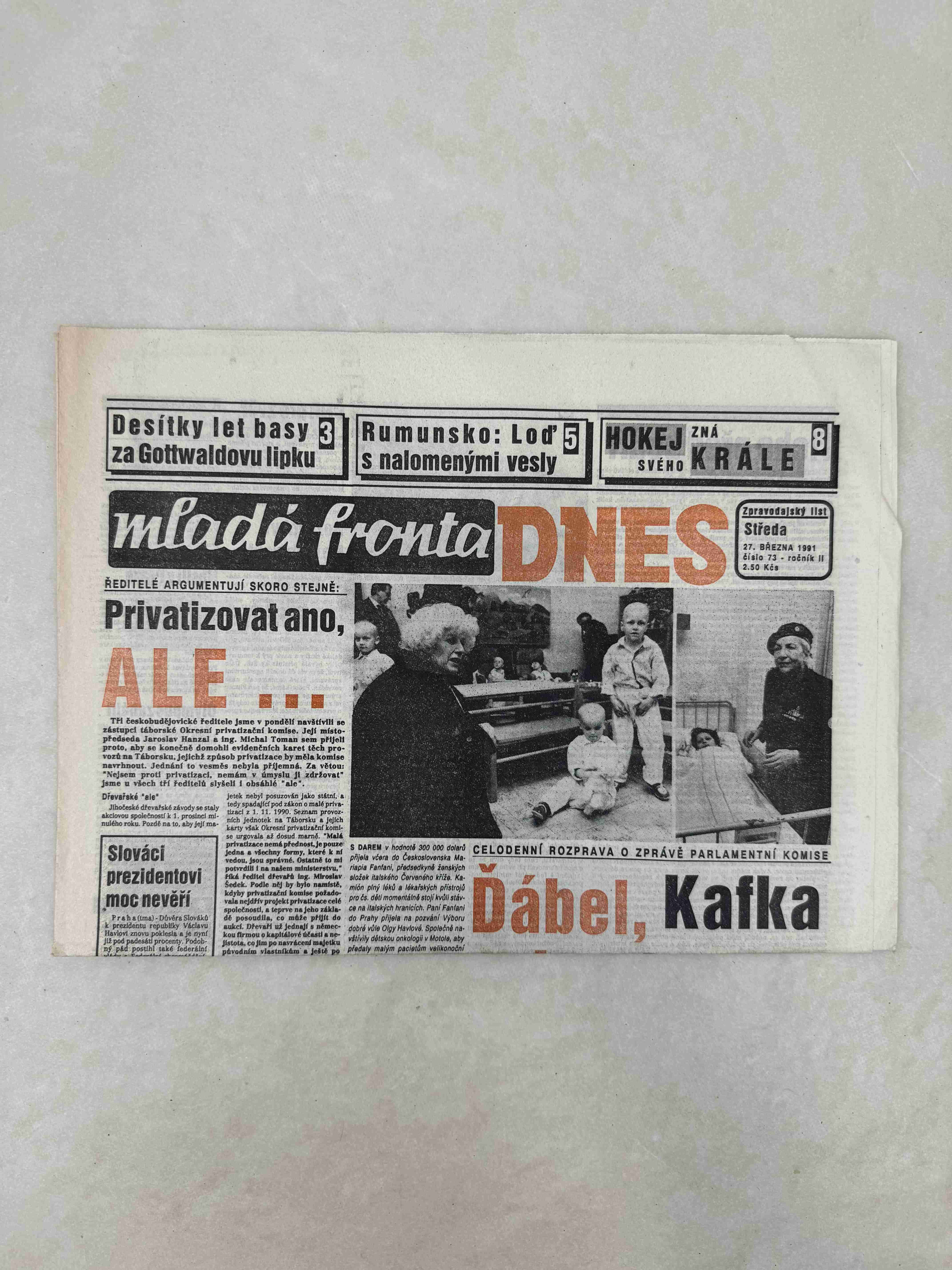 Originální dobový výtisk novin, nejedná se o reprodukci!