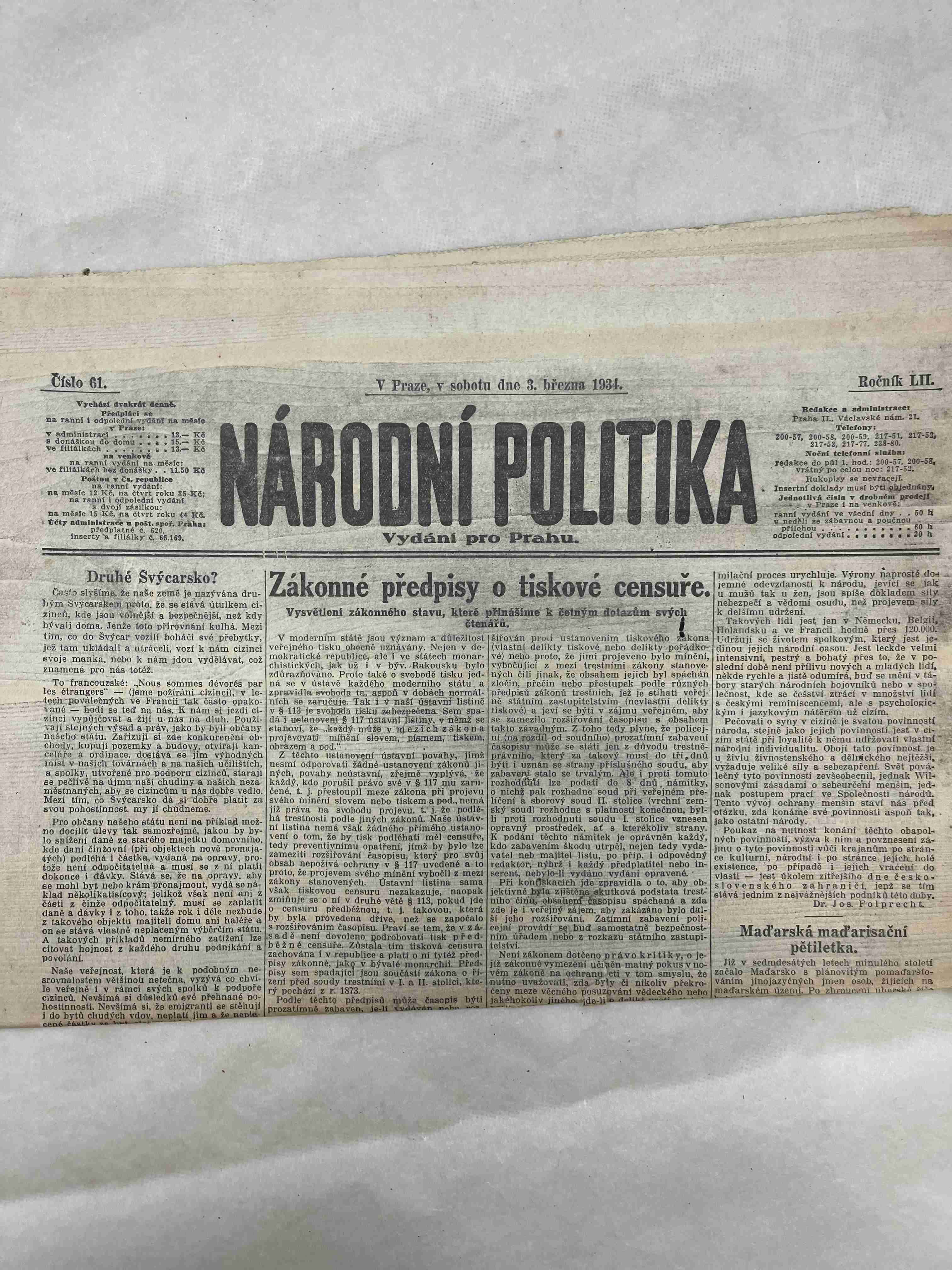 Originální dobový výtisk novin, nejedná se o reprodukci!