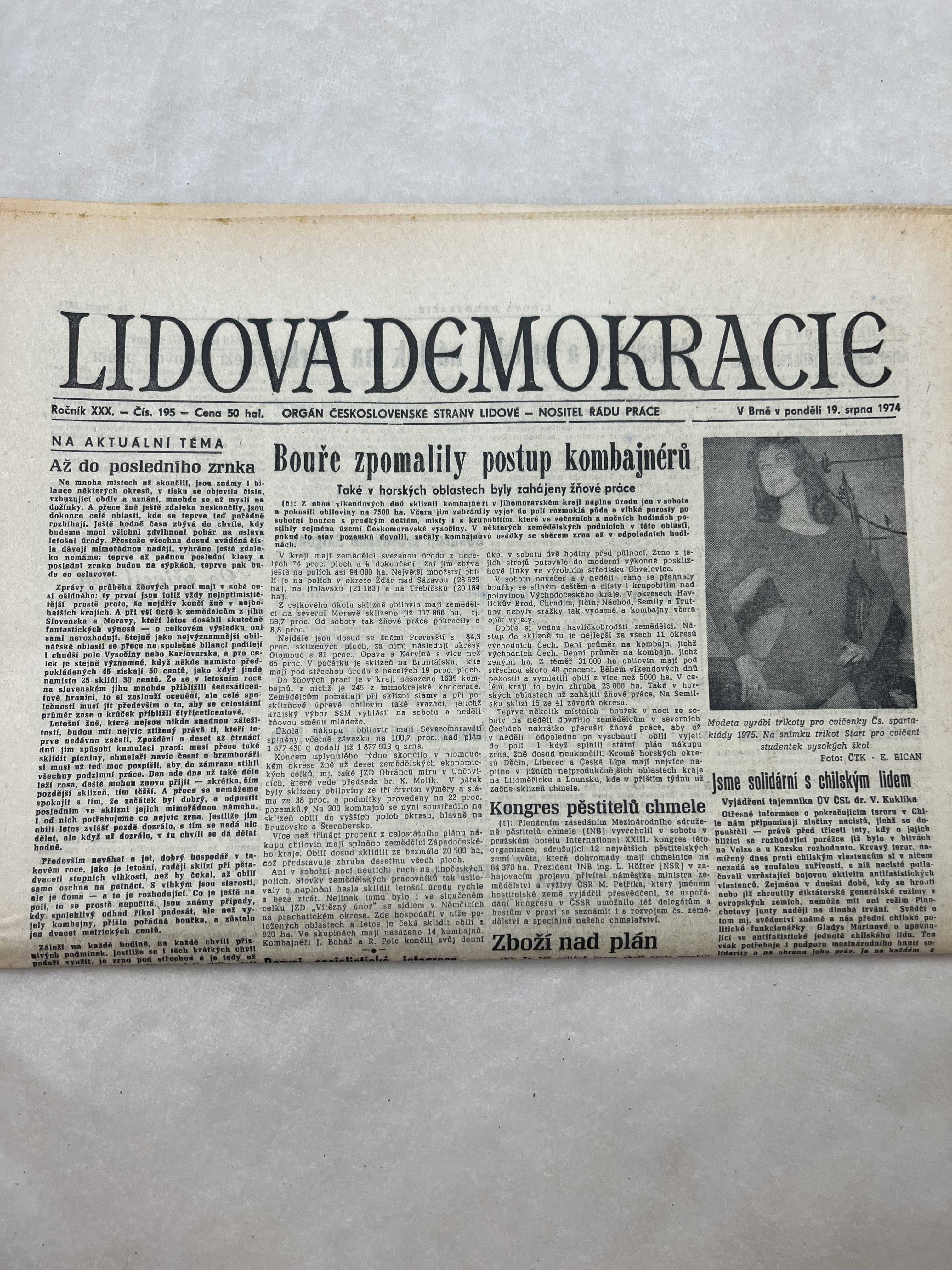 Noviny Lidová demokracie 19.8.1974