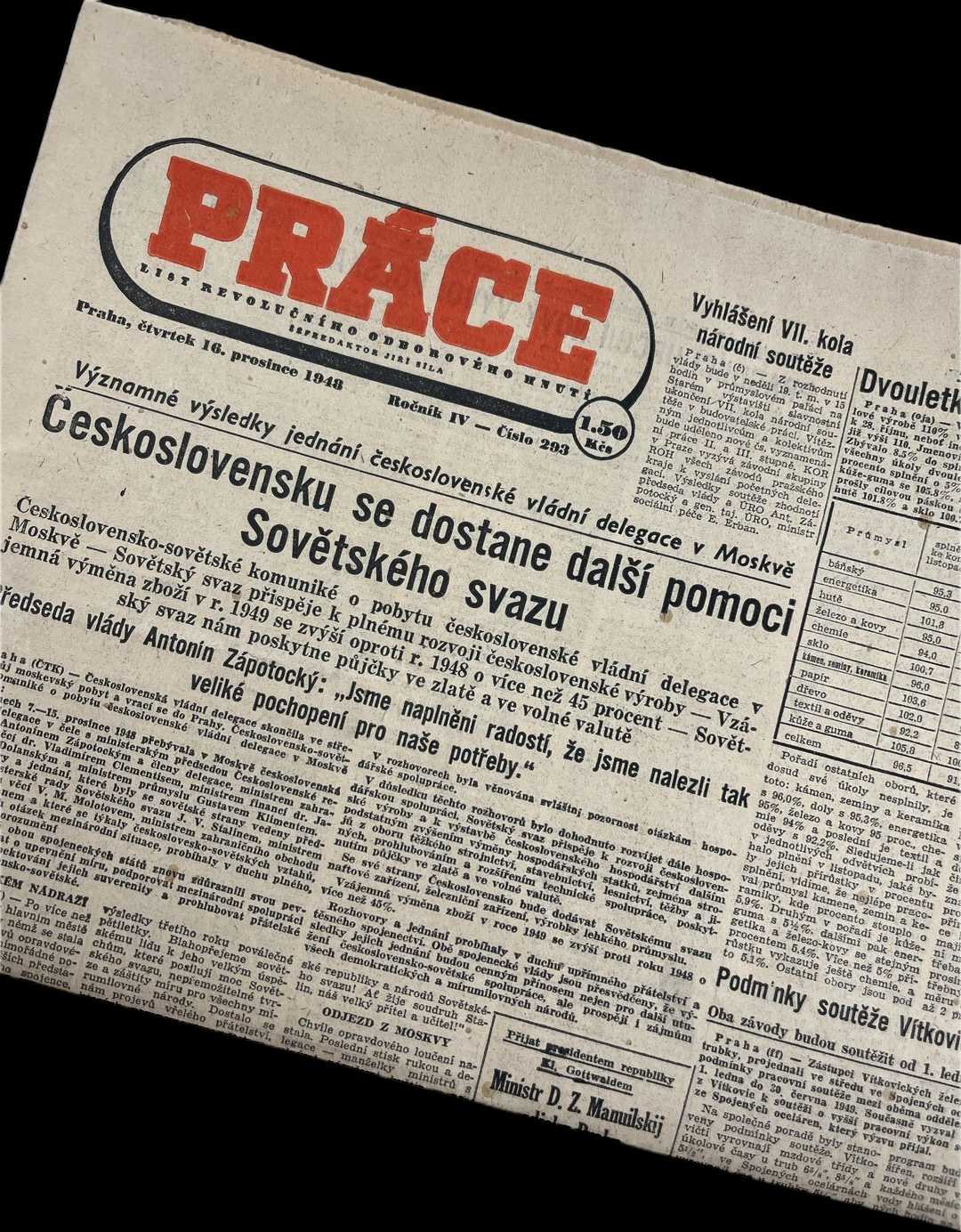 Noviny Práce 16. 12. 1948