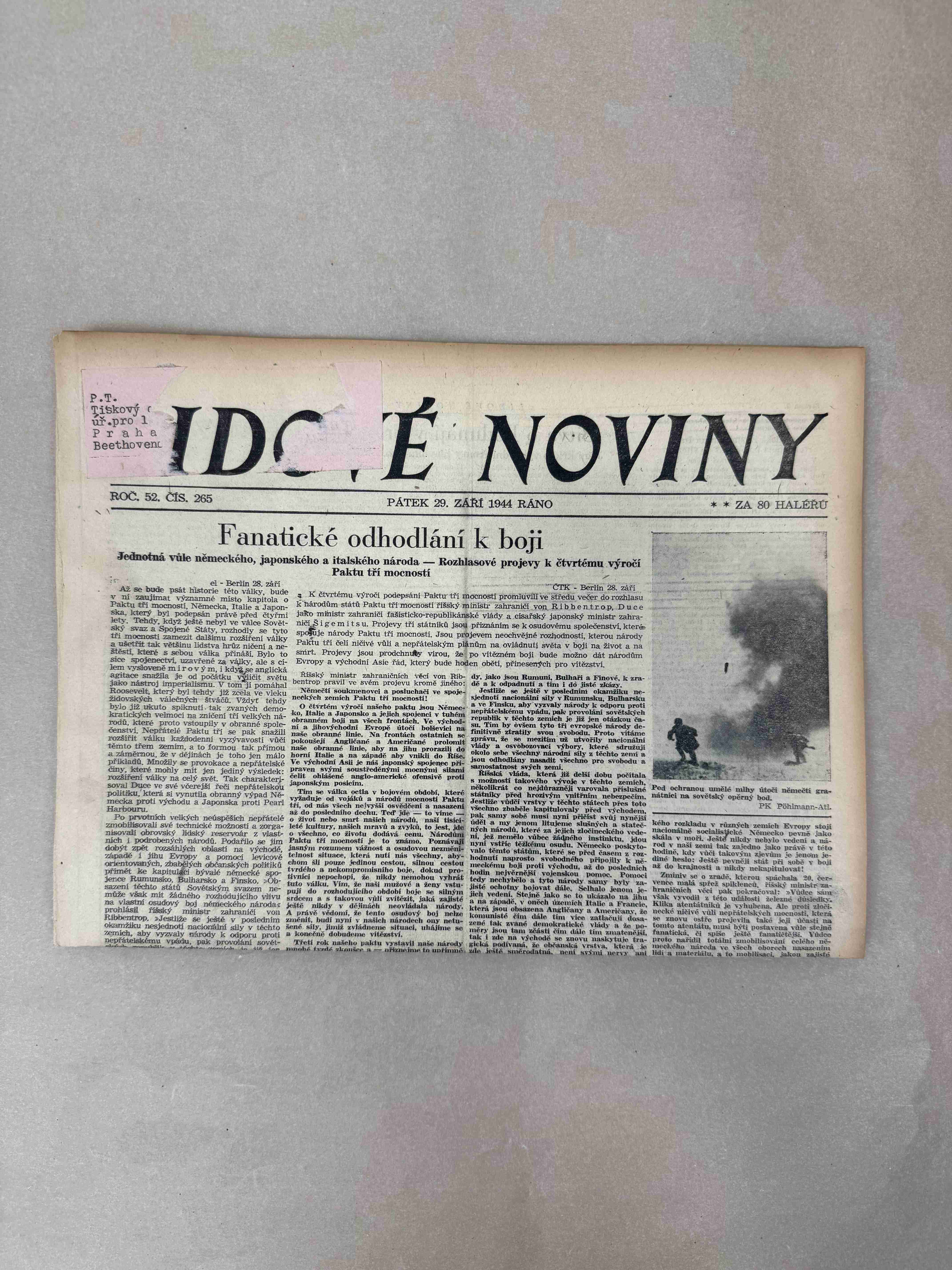 Nabízené noviny jsou určeny výhradně ke sběratelským účelům a neslouží k propagaci jakéhokoliv hnutí směřujícího k potlačení práv a svobod člověka (nacistického, komunistického apod.). Prodávající se distancuje od výše uvedených hnutí a jejich myšlenek.