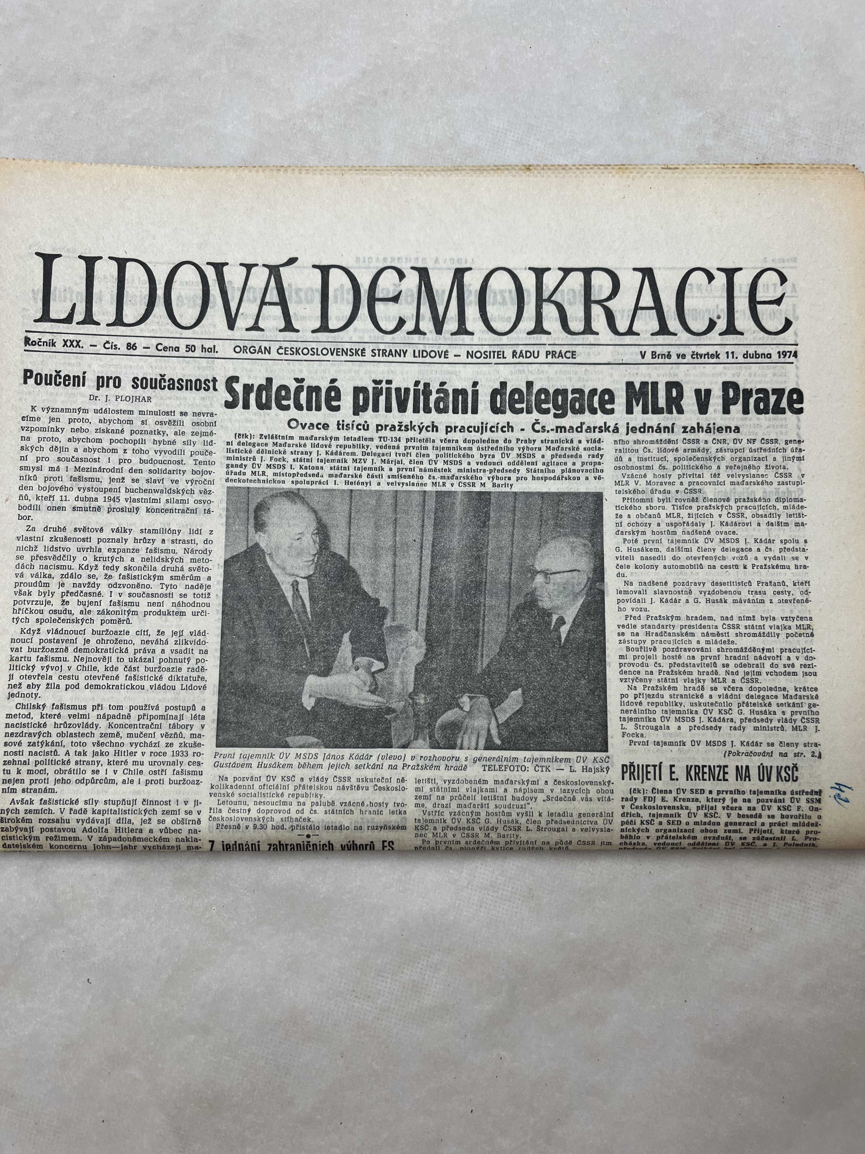 Noviny Lidová demokracie 11.4.1974