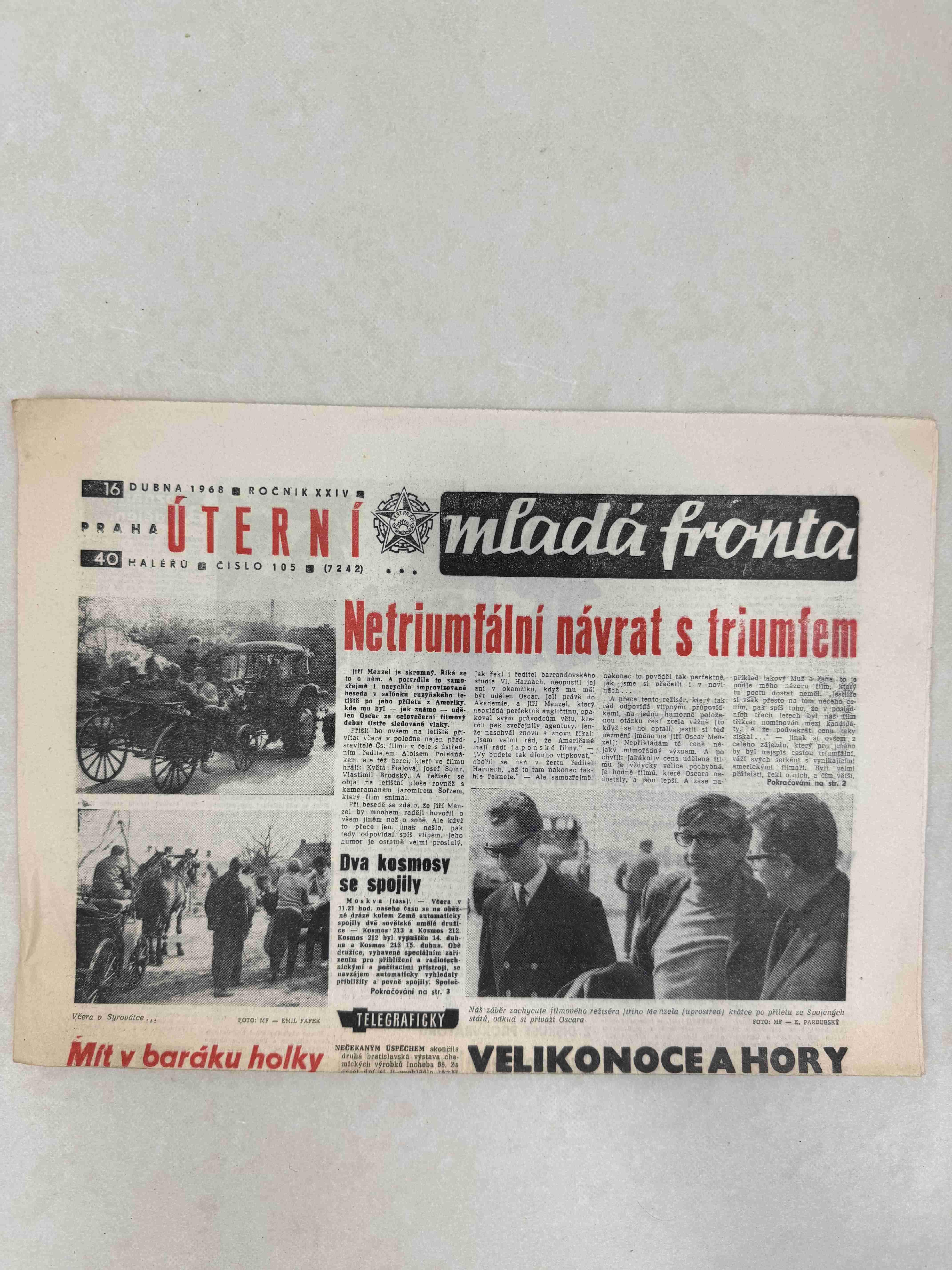 Originální dobový výtisk novin, nejedná se o reprodukci!